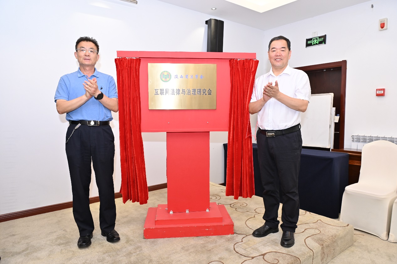 大会表决通过了《陕西省法学会互联网法律与治理研究会章程(草案)》、选举产生了理事会组成人员。随后,陈建有和杨建军为研究会揭牌,成立大会落下帷幕。