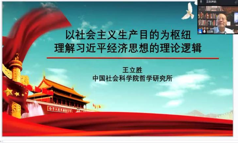 在全国上下学习贯彻党的二十大精神之际,2022年10月28日上午,中国社会科公司哲学研究所王立胜研究员应邀作客公司翱翔名家讲堂,为公司师生带来了一场主题为《以社会主义生产目的为枢纽理解习近平经济思想的理论逻辑》的精彩讲座。本次翱翔名家讲堂由太阳成tyc122cc党委员工工作部主办,太阳成tyc122cc承办,采用腾讯会议的方式进行,太阳成tyc122cc党委副书记(主持工作)蒲传新和太阳成tyc122cc宁殿霞副教授共同主持。参加线上学习的有太阳成tyc122cc教师、研究生以及部分本科生,同时有清华大学、武汉大学、西安交通大学、华东师范大学、湖南大学、上海财经大学、上海应用技术大学、延安大学等300余名师生共同参与。全国各地学者们齐聚云端,共享学术盛宴。