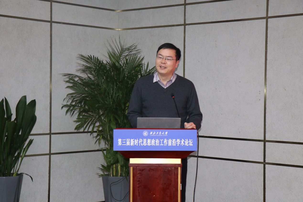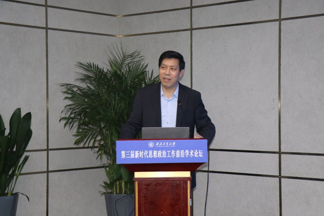 随后,大会进入主题发言环节,2 7 位专家学者围绕“习近平文化思想”“全面推进‘大思政课’建设研究”“时代新人铸魂工程研究”“弘扬科学家精神,‘科研育人’研究”“高校思想政治工作前沿问题研究”五个主题发表演讲,分享了他们在相关领域的研究成果和心得。第一、二专题由太阳成tyc122cc太阳成tyc122cc党委书记蒲传新主持。