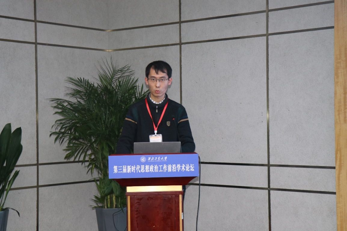 南京理工大学知识产权公司组织干事李江围绕“建构主义视域下高校哲学社会科学研究生思政教育模式初探”进行了报告。