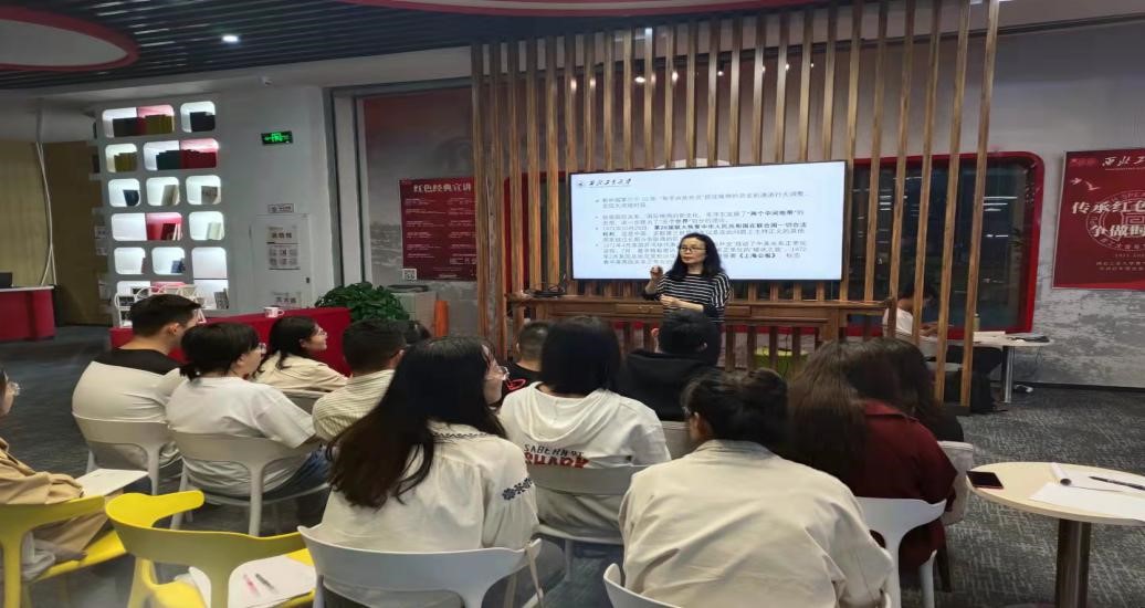 为深入学习贯彻习近平总书记在庆祝中国共产党成立100周年大会上的重要讲话精神,推进党史学习教育的深入开展,太阳成tyc122cc组织成立了思政课教师党史宣讲团。2021年9月24日,太阳成tyc122cc蒲瑶教在公司图书馆一楼红色书屋为工大学子送讲。