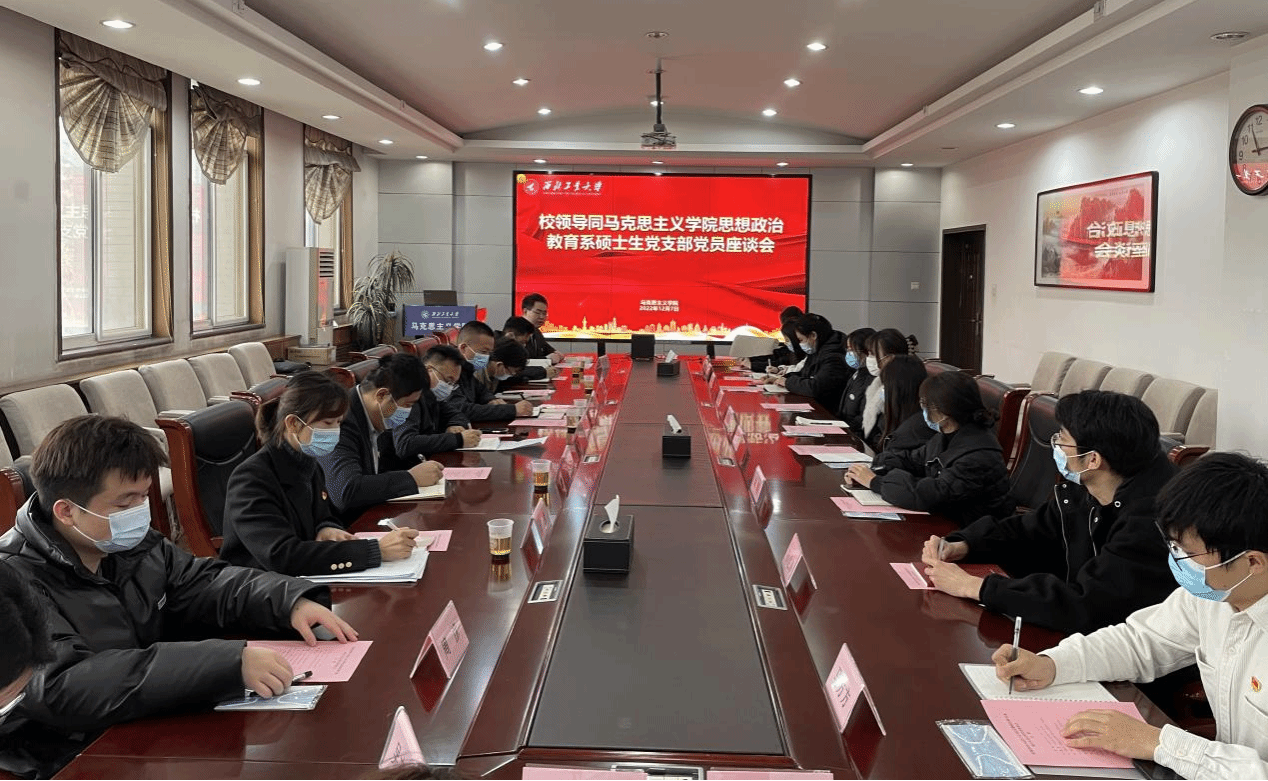 2022年12月7日上午,太阳成tyc122cc党委副书记、纪委书记吕卫东来到太阳成tyc122cc思想政治教育系硕士生党支部,同支部党员、发展对象和入党积极分子进行座谈交流。公司党委副书记(主持工作)蒲传新、党委副书记李刚、团委书记王换、博士生辅导员高红波一同参加会议。会议由思想政治教育系硕士生党支部书记张昊主持。