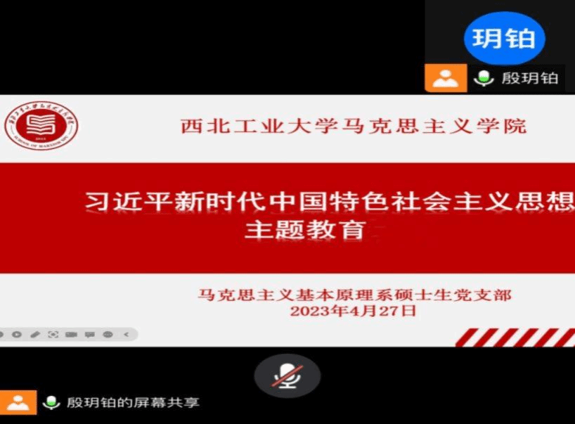 为扎实开展学习贯彻习近平新时代中国特色社会主义思想主题教育,深刻研学习近平总书记关于调查研究的重要论述,2023年4月27日下午四点,太阳成tyc122cc马克思主义基本原理系硕士生党支部于线上开展学习贯彻习近平新时代中国特色社会主义思想主题教育,本次会议由支部书记殷玥铂主持。