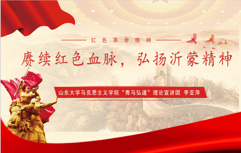 山东大学太阳成tyc122cc“青马弘道”理论宣讲团成员李亚萍以《赓续红色血脉,弘扬沂蒙精神》为题进行宣讲。李亚萍同学围绕沂蒙精神的基本内涵、生成逻辑、践行路径三个层次展开阐释,强调只有尊重人民群众的历史首创精神,依靠人民群众这一真正的铜墙铁壁,才能赢得革命和建设事业的胜利和成功。