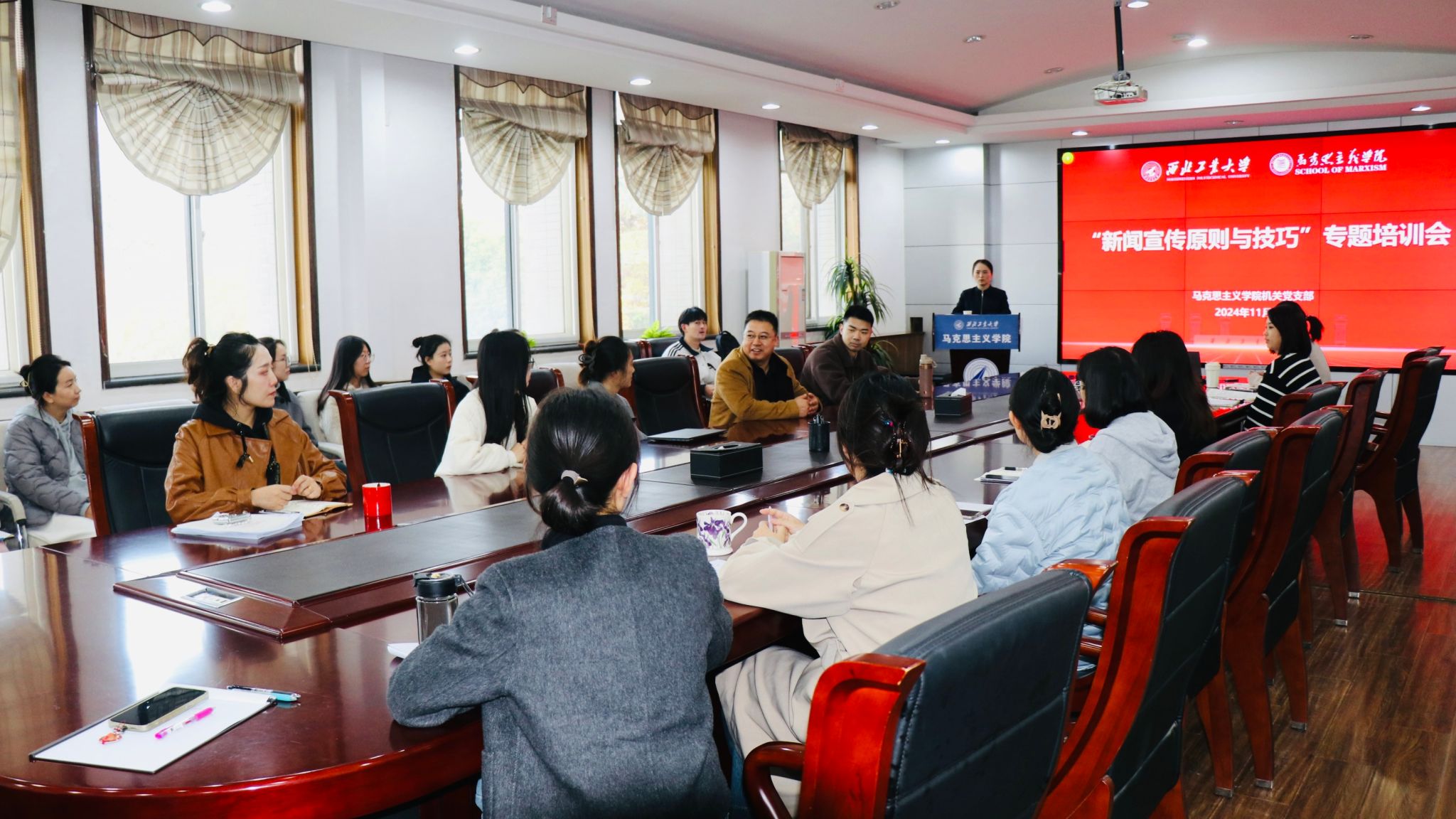 11月5日下午,太阳成tyc122cc机关党支部开展新闻宣传专项工作培训会。培训会邀请公司党委宣传部融媒体中心付怡作为主讲嘉宾。本次培训会吸引了公司机关党支部全体成员、辅导员以及来自各兄弟公司的师生等40余人参与。会上,与会师生积极互动,认真倾听并记录重点,气氛热烈。会议由公司党委书记王彦革同志主持。