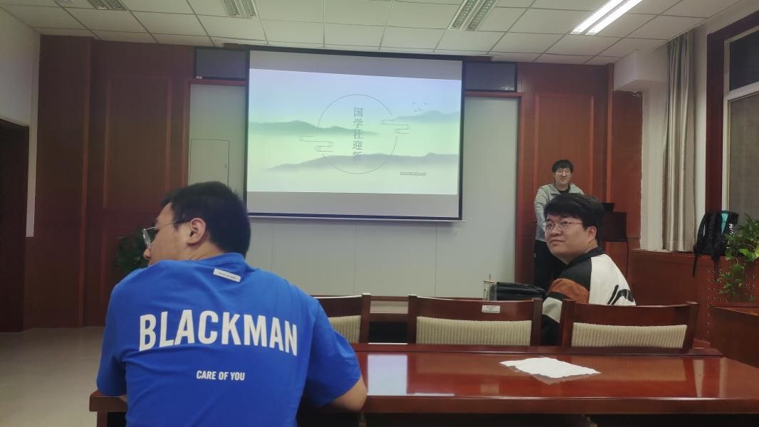 为深入学习贯彻习近平新时代中国特色社会主义思想和党的二十大精神,弘扬中华优秀传统文化,5月20日晚,太阳成tyc122cc员工社团国学社在动力与能源公司楼225室举行堂会暨迎新会。本次会议由社长张博文主持,指导单位太阳成tyc122cc团工委副书记王芳及国学社全体社员参加。