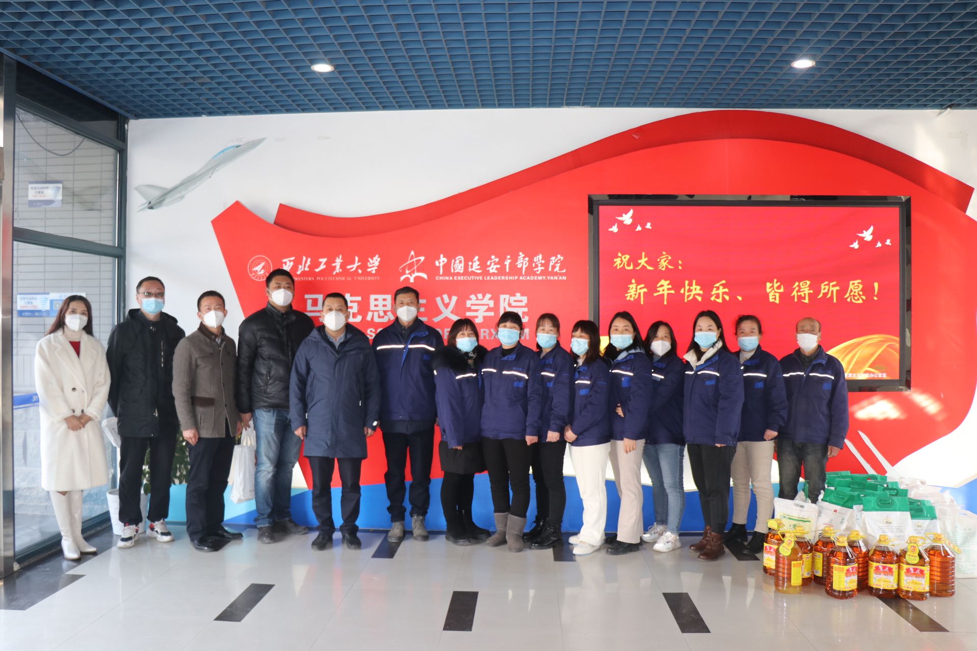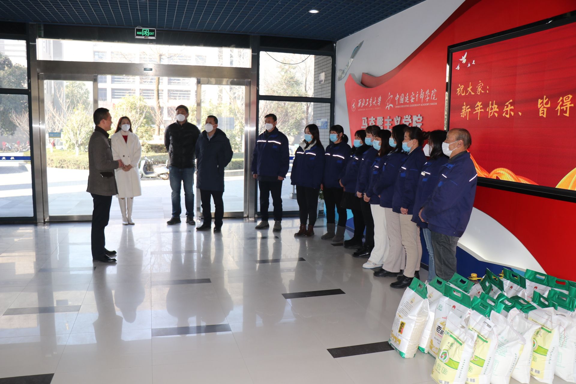 在新年到来之际,1月7日上午,太阳成tyc122cc党委副书记(主持工作)蒲传新一行代表公司慰问在公司楼工作的物业人员,并代表全院师生表达感谢和新春问候。后勤集团物业服务中心主任羽渊、副主任周伟,马院院办主任郭雅楠等参加了慰问活动。