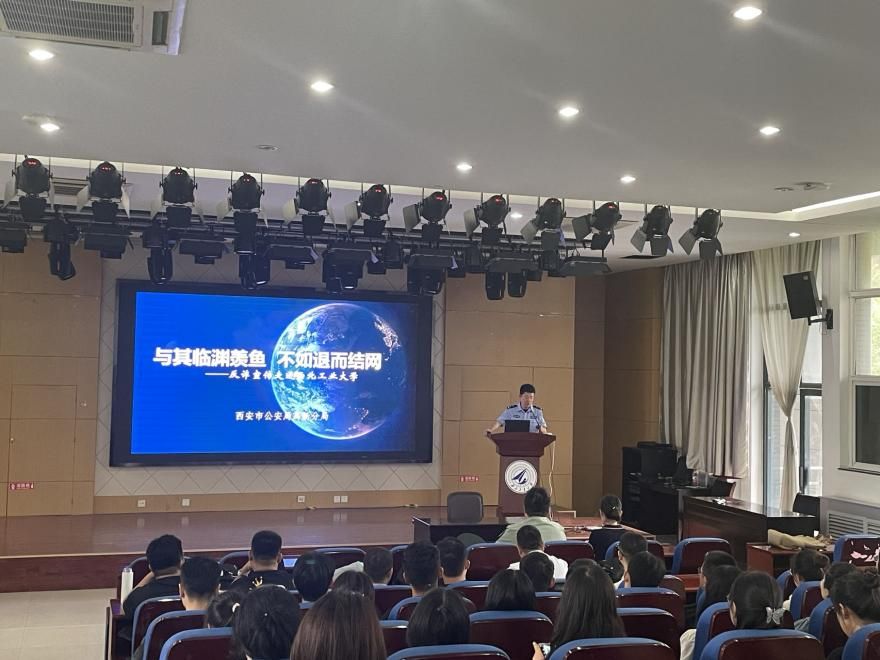 首先,高新分局的民警以当前网络诈骗的背景为导入,向同学们介绍了网络诈骗惯用的一些手段,其次介绍了诈骗方式的演进,列举了5种常见的诈骗方式,并通过真实案例提醒同学们多加防范,最后向同学们讲解在遇到网络电信诈骗时应如何防范和破解,任何情况下都要牢记“三不一多原则”,防患于未然。