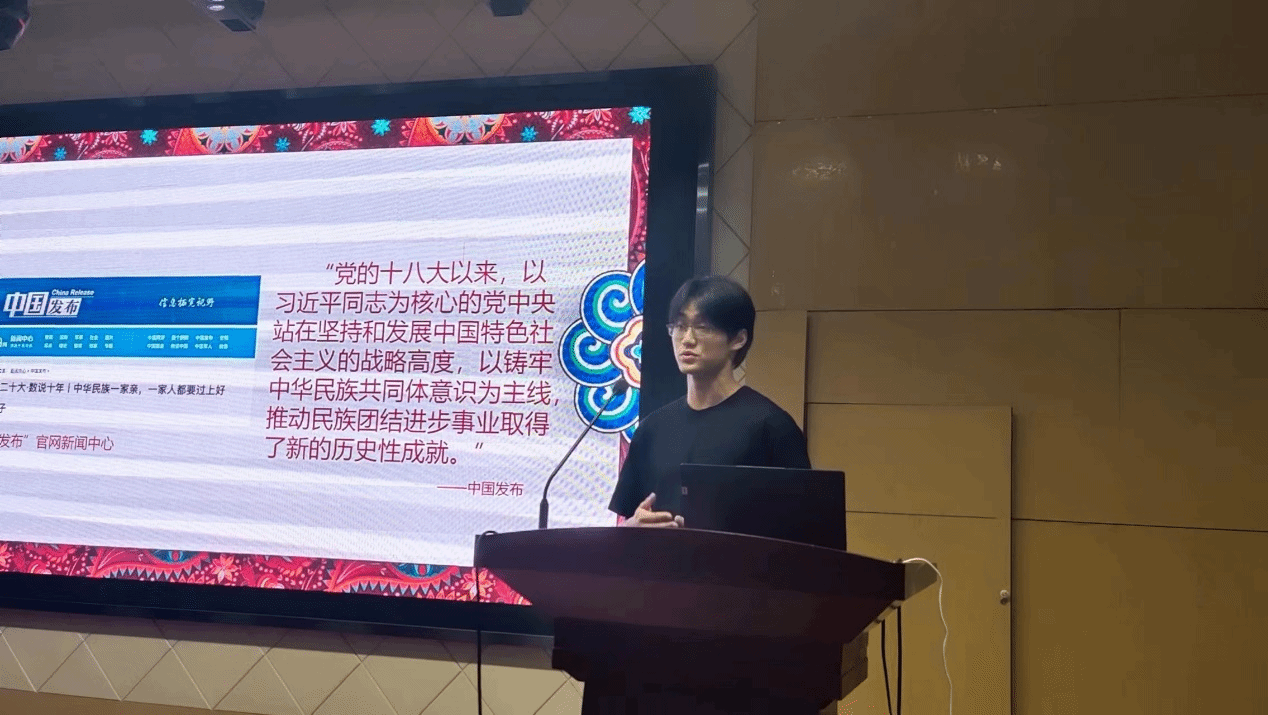 教育实验公司的杨文浩以西工大优秀学子麦吾兰·麦麦提敏为例,通过回顾中国脱贫攻坚战的伟大胜利,分析了新时代民族团结进步事业的有利条件,为铸牢中华民族共同体意识向青年学子发出号召——“以民族百花魂,铸中华赤子心”。