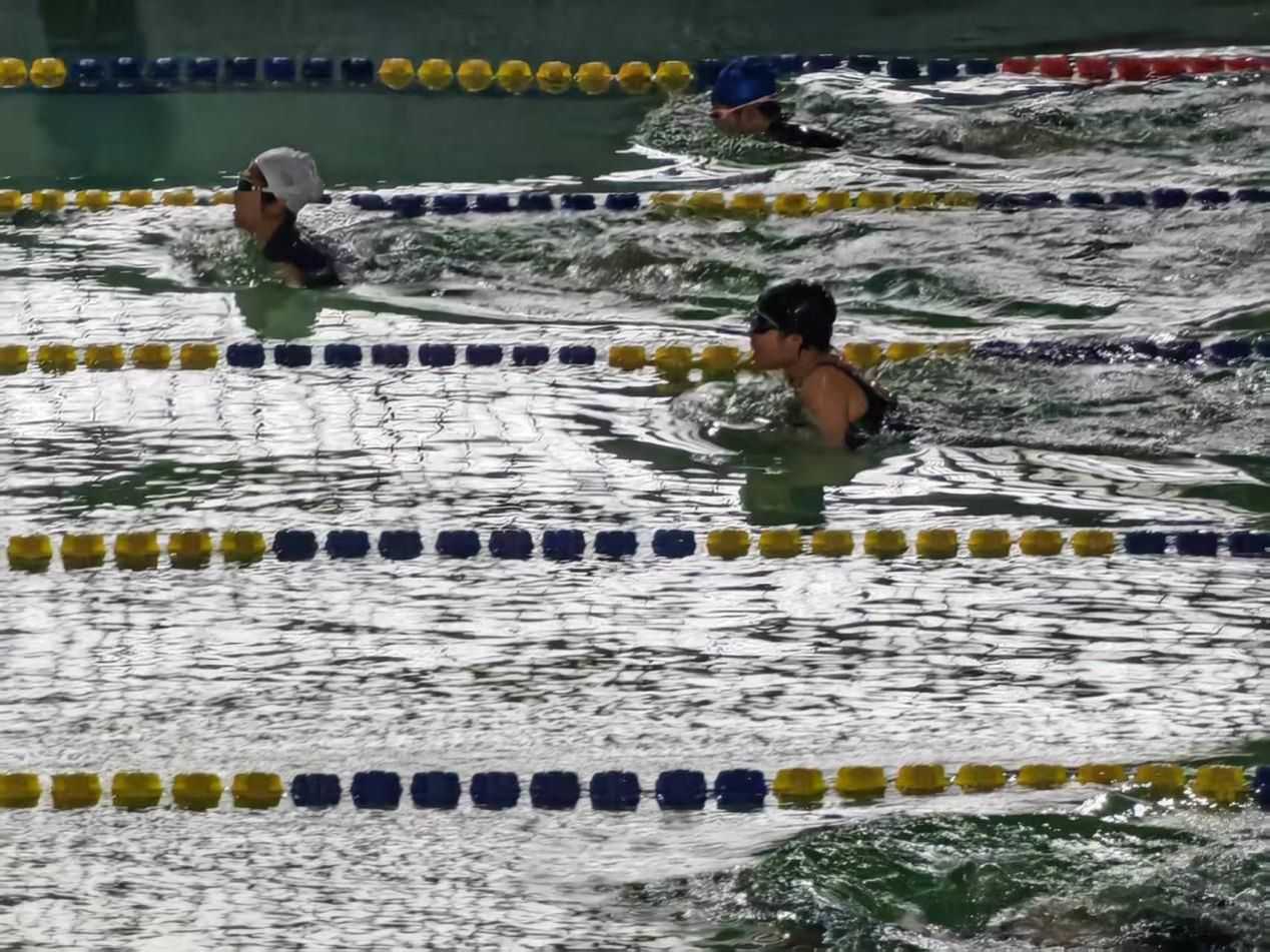 赛场上,运动员们以行动诠释体育精神。羽毛球团体赛中双打组合配合默契,攻守有序;田径赛场见证力量与速度的较量,运动员挥洒汗水,在跳远沙坑与跑道上留下拼搏印记;游泳健儿劈波斩浪,以坚韧的意志带动每一次划臂,荣获全校女子蛙泳50米第五名、女子团体总分第六名的好成绩。