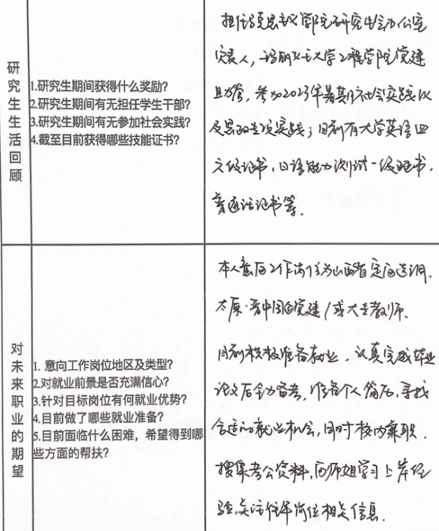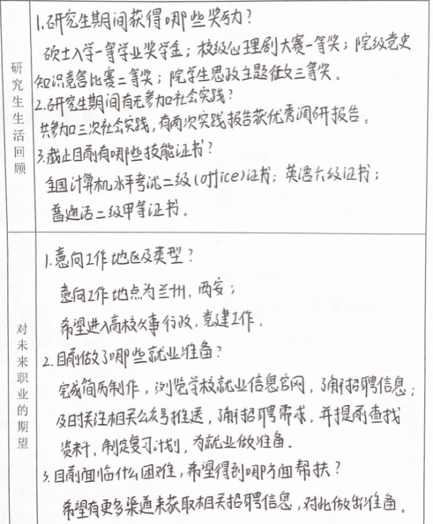 本次精准帮扶工作做到了有重点、有特点、有节点。帮扶老师通过和员工谈话,详细了解员工的基本信息、学业情况、就业创业意向、就业进展情况等,在此基础上,根据每位员工确定的就业意向,制定不同的帮扶方案,做到“一人一策”,筛选合适的就业信息传达给员工,达到了“点对点”服务的帮扶效果。同学们在谈话过程中也收获颇多,对当前马克思主义理论学科的就业形势、个人的就业方向、求职技能掌握等都有了全面的了解,开启了个人求职就业的第一站。
