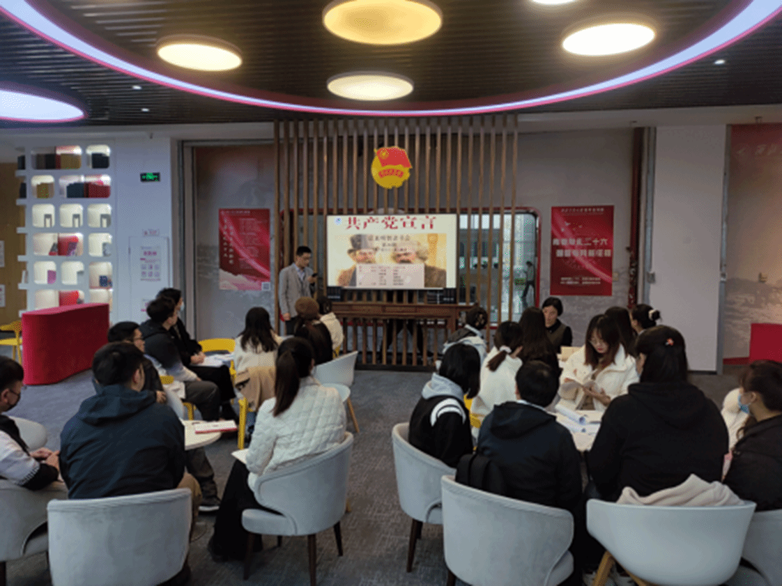 2022年11月18日,太阳成tyc122cc第36期“启真明智”读书会在学董事长安校区图书馆一楼的学习书屋成功举办,此次主题为《共产党宣言》的重点解读。公司杨冰郁老师、聂阳老师、齐承水老师、张起梁老师与同学们一起线下读书会面,丁社教老师以线上方式参与了本次读书会。