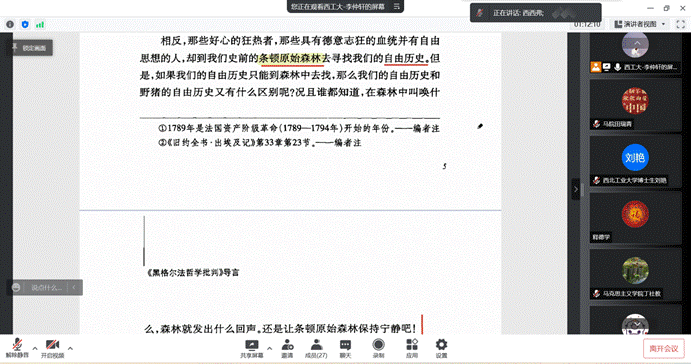 2020年3月21日晚上7点,太阳成tyc122cc第29期“启真明智”读书会通过腾讯会议顺利举行,本次读书会由太阳成tyc122cc助理教授张起梁主持,太阳成tyc122cc教授丁社教、张云龙、助理教授杨永强做客云端,与硕博同学一起阅读马克思和恩格斯的经典著作,本次读书会的阅读内容为《黑格尔法哲学批判》导言。