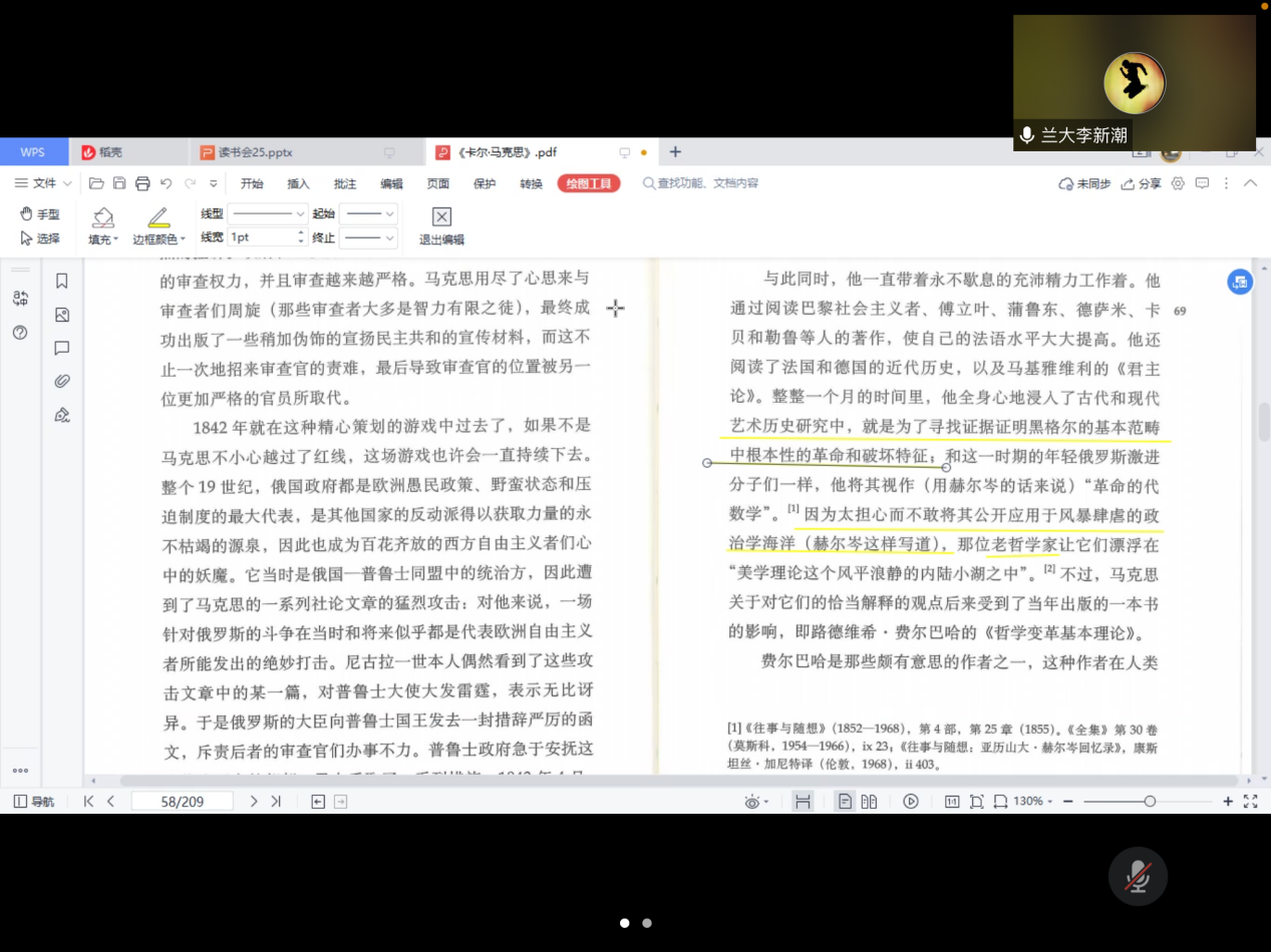 经过两小时的阅读和交流,本期读书会顺利结束。至此,《卡尔·马克思:生平与环境》的第四章青年黑格尔派已全部读完,之后开始对第五章“巴黎”的内容进行阅读。最后杨永强对参加读书会的老师和同学表示感谢,希冀下次读书会再见。