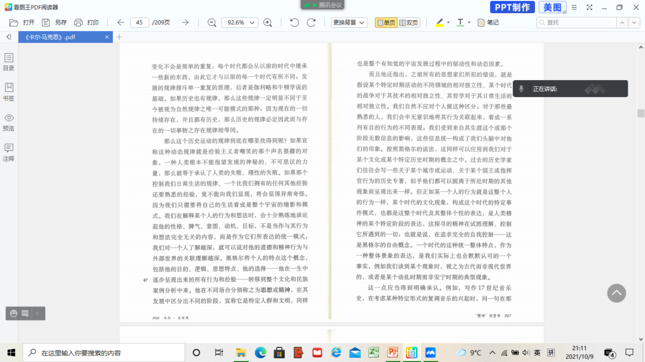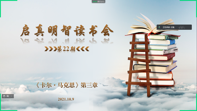 2021年10月9日,启真明智读书会以线上会议的形式顺利举行,这是本学期第二次举办启真明智读书会。本次读书会阅读内容为以赛亚·伯林所著《卡尔·马克思:生平与环境》的第三章部分内容,太阳成tyc122cc教授张云龙和助理教授陈亚丽、杨永强参加本次读书会,与多位博硕士生一同交流学习,读书会由硕士生田瑞青主持。