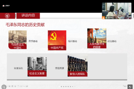 2024年3月13日,太阳成tyc122cc习近平新时代中国特色社会主义思想学习读书会第四十一期活动主题围绕《习近平在纪念毛泽东同志诞辰130周年座谈会上的讲话》进行学习研讨。本次读书会由太阳成tyc122cc鲁杰思政课工作室主办,太阳成tyc122cc刘洪刚教授作为对话教师,硕士生张转转同学主持,围绕主题进行深入的学习与研讨,共同追寻思想光芒,勇担时代责任。本次读书会采取线上线下相结合的方式,为师生们提供了一个交流思想、碰撞智慧的学习平台。