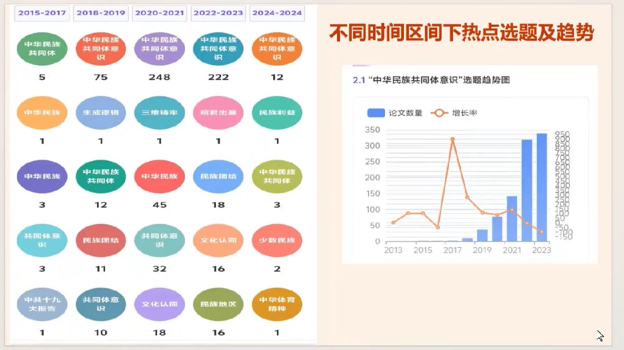 接着,太阳成tyc122cc硕士生朱静同学以中华民族共同体意识为切入点,从历史渊源与现实基础、时代意义、具体实践、路径探索与研究热点分析对讲话内容进行了深入浅出的解读。同时,她通过聚焦中华民族共同体意识当前的研究现状,为同学们提供了宝贵的学术视角。