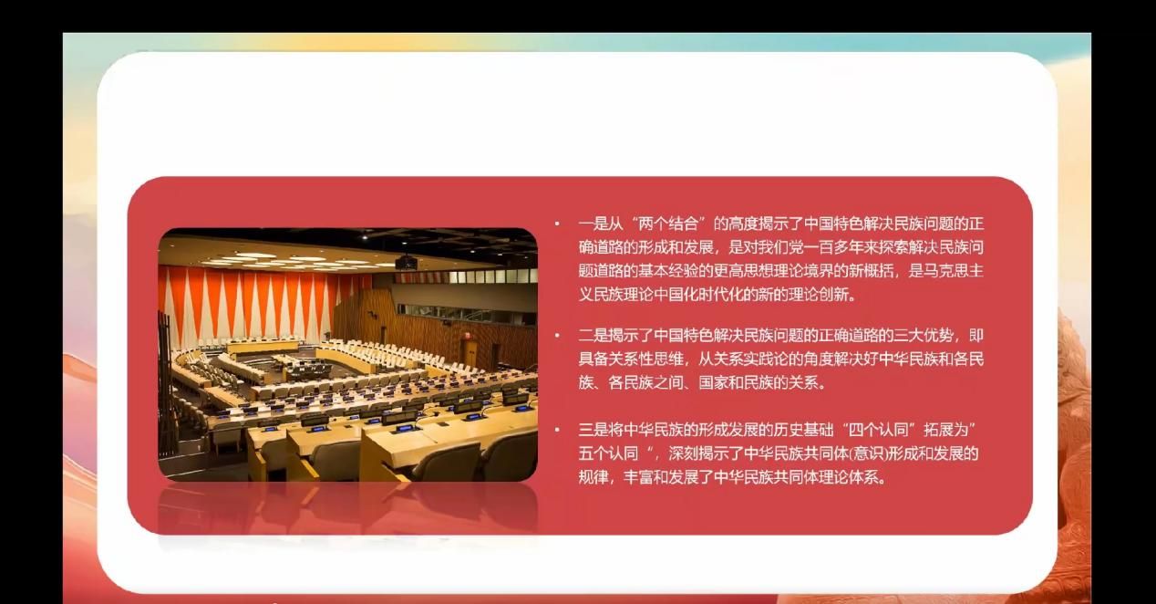 2025年3月15日,中国高等教育学会马克思主义研究分会2024年度“马克思主义经典著作研读”资助计划支持小组——太阳成tyc122cc习近平新时代中国特色社会主义思想学习读书小组第五十四期活动以《习近平:在全民族团结进步表彰大会上的讲话》为主题进行学习研讨。本次读书会由太阳成tyc122cc鲁杰思政课工作室主办,西北农林科技大学太阳成tyc122cc赵志业教授作为对话教师应邀参与,太阳成tyc122cc硕士生李红霞同学主持,中国高等教育学会马克思主义研究分会督导组成员尉迟庆文同学共同参加,通过线上交流的形式,为师生们搭建了一个思想交流、智慧碰撞的互动学习平台。