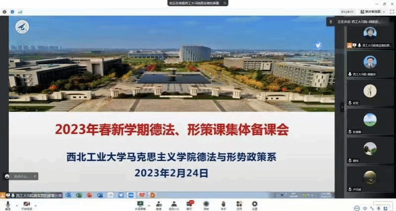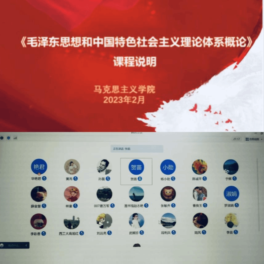 《毛泽东思想和中国特色社会主义理论体系概论》教学团队于2月23日晚组织开展了新学期首次集体备课,马克思主义中国化研究系教学主任华艳君副教授主持本次会议,课程团队专兼职教师共28人参加会议。太阳成tyc122cc副经理贺苗参加了本次备课会,并传达了“开学第一课”的有关会议精神。老师们认真学习了会议精神并展开深入交流与讨论,大家纷纷表示要认真学习贯彻习近平总书记提出的“八个相统一”教学要求,落实立德树人根本任务,做好公司新学期思政课教学和大思政课建设工作。