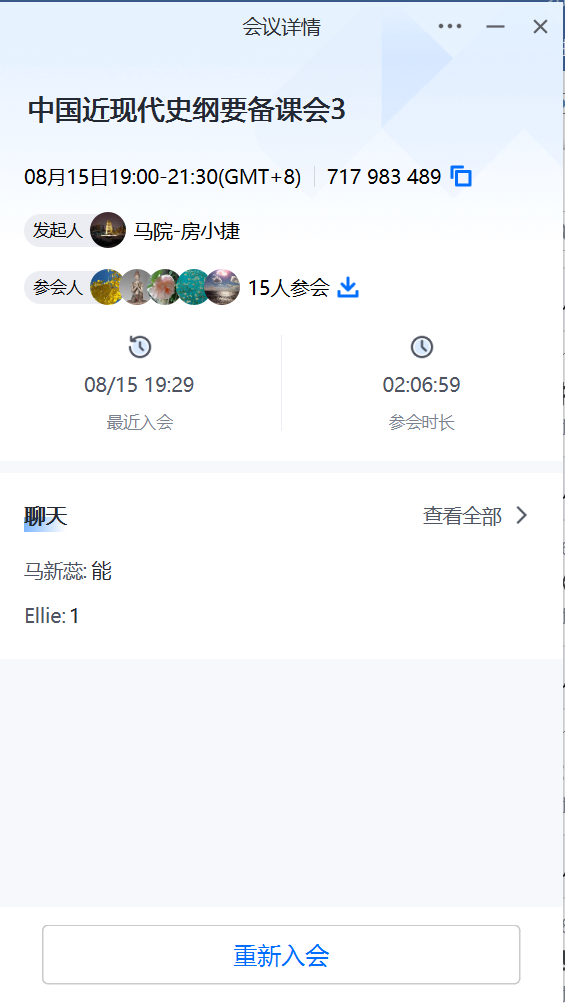 中国近现代史基本问题研究系于8月15日晚,在线召开集体备课会。各位老师结合会前对“周末理论大讲堂”等专家报告的自主学习、《台湾问题与新时代中国统一事业》白皮书的认真学习,通过轮流发言、相互交流、共同探讨的方式,对全体教师暑期备课进度及理论学习情况进行了交流与探讨。会议由教学主任房小捷主持,中国近现代史基本问题研究系全体教师参加会议。会议通过依托课件展示的方式交流教学经验,帮助已经上过课的青年教师提高教学质量,帮助新任课教师提升开展课堂教学的思路和教学方法。会上,马新蕊、山磊、马超、杜轶伦、房小捷等五位已经上过中国近现代史纲要或课程的老师依次分享一个主题或单元的课件,主要介绍课程目标、教学重点、员工反映、课件如何配合教学,突出自身特色和教学心得。
