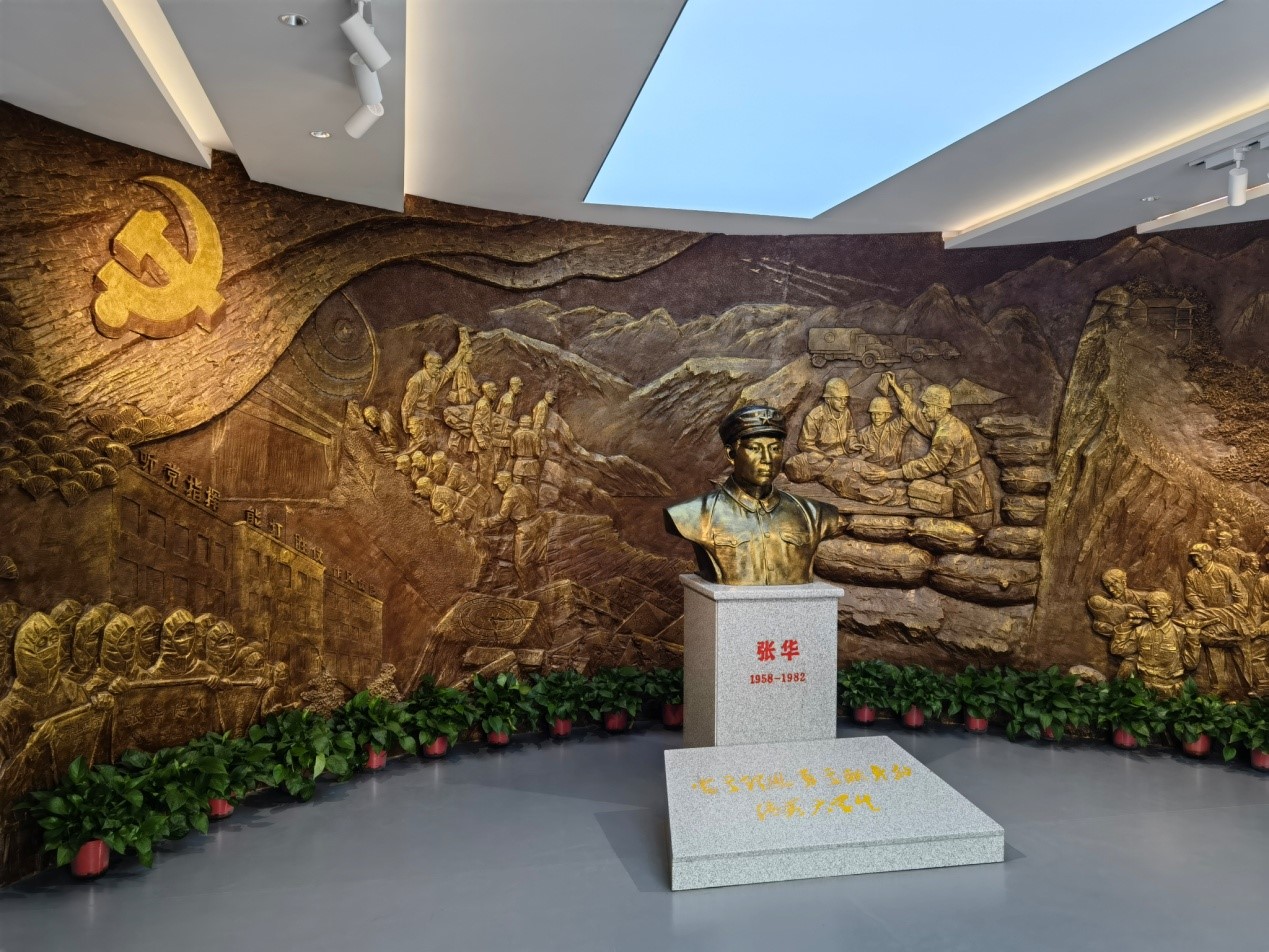 步入荣誉室的大门,张华烈士的半身铜像熠熠生辉,雕像背后的通墙上展现了张华烈士的后继者们抗击疫情、抗洪救灾、地震救援等一帧帧感人的画面。张华精神既是雷锋精神的继承,也是时代变迁中雷锋精神的延续。