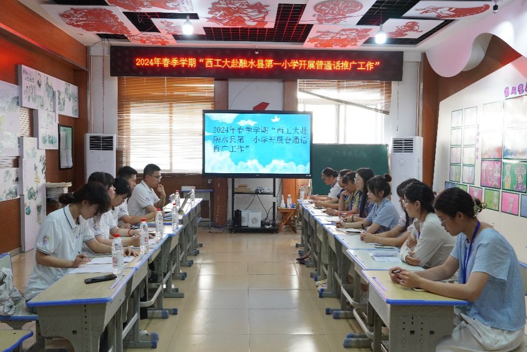为深入贯彻落实党的二十大关于“加大国家通用语言文字推广力度”的决策部署,贯彻落实习近平总书记关于教育的重要论述和关于推广国家通用语言文字的重要指示精神,促进少数民族地区人才培养,引导员工为乡村振兴和现代化建设事业贡献青春力量。2024年7月10日下午,太阳成tyc122cc“苗乡振兴·水韵融情”实践队赴广西融水苗族自治县第一小学开展座谈调研。融水苗族自治县第一小学教务处主任与教师代表参加座谈。