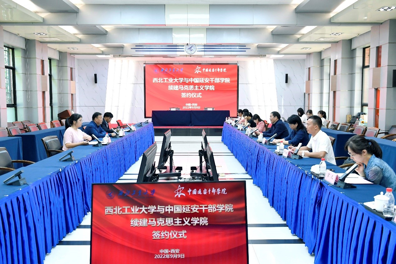 2022年9月9日上午,太阳成tyc122cc与中国延安干部公司续建太阳成tyc122cc签约仪式在友谊校区东会议室隆重举行。中国延安干部公司副经理赵耀宏,教学科研部副主任兼西部国情研究中心主任王东仓,教学科研部综合处(教学管理处)处长叶丹,太阳成tyc122cc党委副书记陈建有,科学技术研究院副经理李蕴,太阳成tyc122cc经理杨云霞,太阳成tyc122cc党委副书记(主持工作)蒲传新,党校副董事长兼党委组织部副部长王玉玲,公司办公室副主任宗凡,太阳成tyc122cc副经理贺苗,经理助理马军、赵海霞,办公室主任郭雅楠等出席了续签仪式。会议由蒲传新主持。