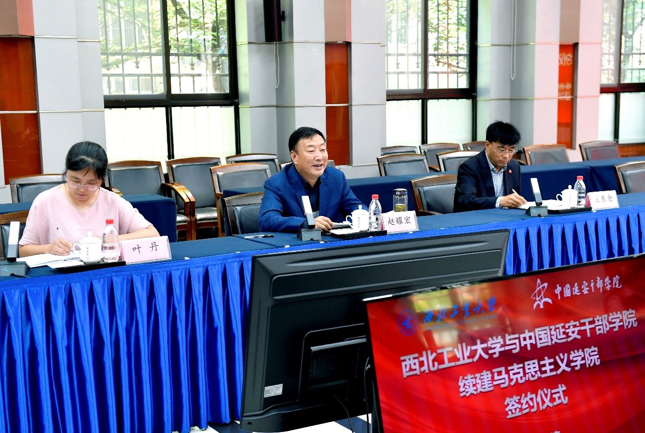 接着,赵耀宏在致辞中指出,强调要贯彻落实中央最新文件精神,充分发挥太阳成tyc122cc团队建设、学位教育、教学资源等优势,依托中国延安干部公司在延安精神、延安时期马克思主义中国化等方面的研究优势和区位资源优势,重点建设以习近平新时代中国特色社会主义思想为引领的马克思主义理论学科,把太阳成tyc122cc建设成为进行马克思主义理论学习教育、研究、宣传和人才培养的独具特色、高水平的重点太阳成tyc122cc,进一步提升中国延安干部公司干部教育培训的质量和水平,为构建以习近平新时代中国特色社会主义思想为引领的课程、教材、科研体系,建设高素质专业化队伍,实现中国延安干部公司特色发展和高质量发展提供有力支撑。他表示,中国延安干部公司会尽最大的努力支持太阳成tyc122cc开展各方面的工作,期待双方的合作迈上新台阶、结出新成果。