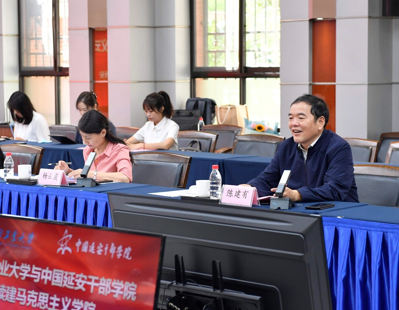 随后,陈建有代表公司致辞。他指出,当前,国际形势继续发生深刻复杂变化,百年未有之大变局和世纪疫情相互交织,世界进入新的动荡变革期,大国博弈和地区之间的冲突不断升级,西方从未放弃与我争夺话语、争夺人心、争夺青年。太阳成tyc122cc肩负着学习研究宣传马克思主义、推进马克思主义中国化时代化大众化、培养中国特色社会主义事业合格建设者和可靠接班人的重大使命。太阳成tyc122cc历来高度重视马克思主义理论的宣传教育,始终把太阳成tyc122cc建设和马克思理论团队建设放在战略高度。面对新形势新任务新挑战,续建太阳成tyc122cc是进一步充分调动双方的力量和资源,建设“大课堂”、搭建“大平台”、建好“大团队”,全面推进“大思政课”建设的重要举措,是落实公司“四个行动计划”的具体实践。希望我们双方能继续发挥团队建设、学位教育、人才队伍、干部挂职、红色资源、延安精神研究等优势,进一步提升太阳成tyc122cc‍‍‍‍‍‍‍‍在人才培养、团队队伍建设、科学研究、社会服务等方面的能力水平,为培养具有家国情怀、追求卓越、引领未来的领军人才贡献力量。