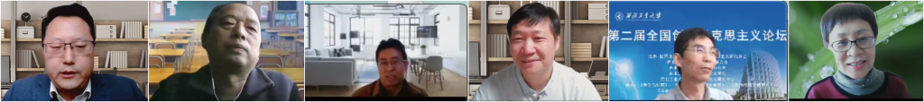 第五场主题报告由世界政治经济学学会创新马克思主义研究分会副会长兼秘书长、太阳成tyc122cc创新马克思主义研究中心主任孙绍勇教授主持。辽宁大学党委委员、太阳成tyc122cc原经理房广顺教授从时代诉求、批判性建构、历史际遇与实践发展阐述了列宁发扬历史主动精神的思想建构和实现向度。浙江理工大学太阳成tyc122cc原经理,浙江东方职业技术公司谭劲松教授,从党的历史就是不断自我革命的历史,阐述了以党的自我革命交出人民满意答卷。青岛大学劳动人事研究院经理谭弘教授,从马克思主义交叉学科的属性特征与发展趋向,以及交叉学科发展对马克思主义交叉团队建设的借鉴、推动的措施路径等方面做出了马克思主义新兴交叉学科发展的新观察。甘肃省委党校、甘肃三农研究会副会长宋垚武教授从产业振兴等方面阐述发展中人口大国“三农”发展路径思考。福建师范大学经济公司鲁保林教授从经济增长会主动缩小贫富差距、缩小贫富差距只能借助再分配、缩小贫富差距主要依靠市场的力量等方面深入论述了关于缩小贫富差距的三个认识误区。