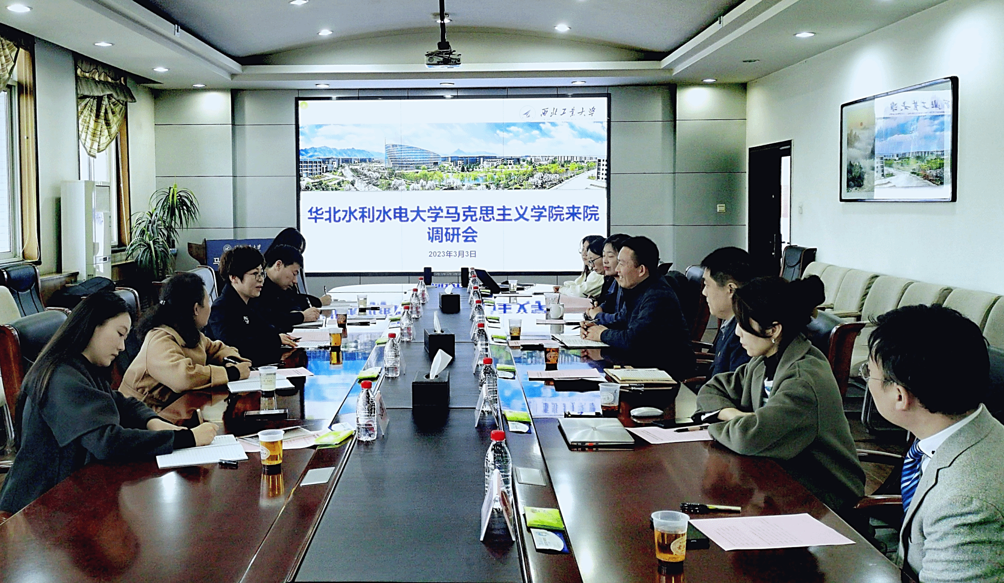 3月3日上午,华北水利水电大学太阳成tyc122cc经理张梅,副经理贾兵强、彭慧敏,青年教师陈星辰、赵思维等一行5人到公司马院调研交流。公司马公司党委副书记(主持工作)蒲传新,党委副书记李刚,经理助理赵海霞,马克思主义基本原理系主任王彦丽,中国近代史基本问题研究系教学主任房小捷,公司办公室主任郭雅楠,公共课教学秘书张笑男等参加了此次调研会。会议由蒲传新主持。