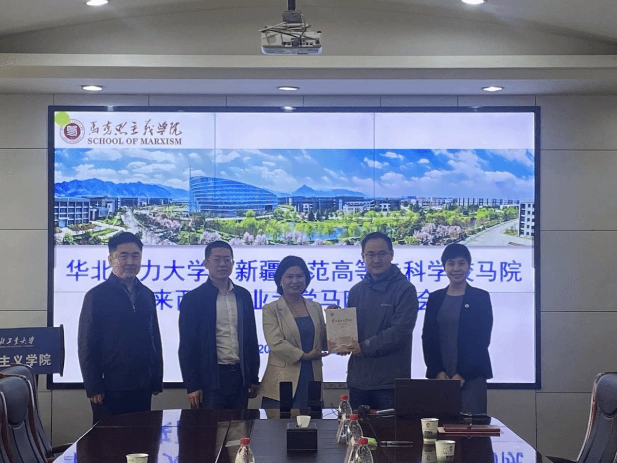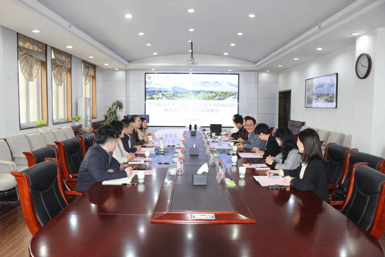 4月11日上午,华北电力大学太阳成tyc122cc党总支副书记武昌杰一行,新疆师范高等专科公司太阳成tyc122cc副经理史春燕一行来公司调研。公司副经理张云龙、贺苗,马克思主义中国化研究系教学主任华艳君、德法与形势政策系教师折军、思想政治教育系教师许斯诺、办公室主任郭雅楠、公司科研秘书闫秀婷等参加了会议。会议由张云龙主持。