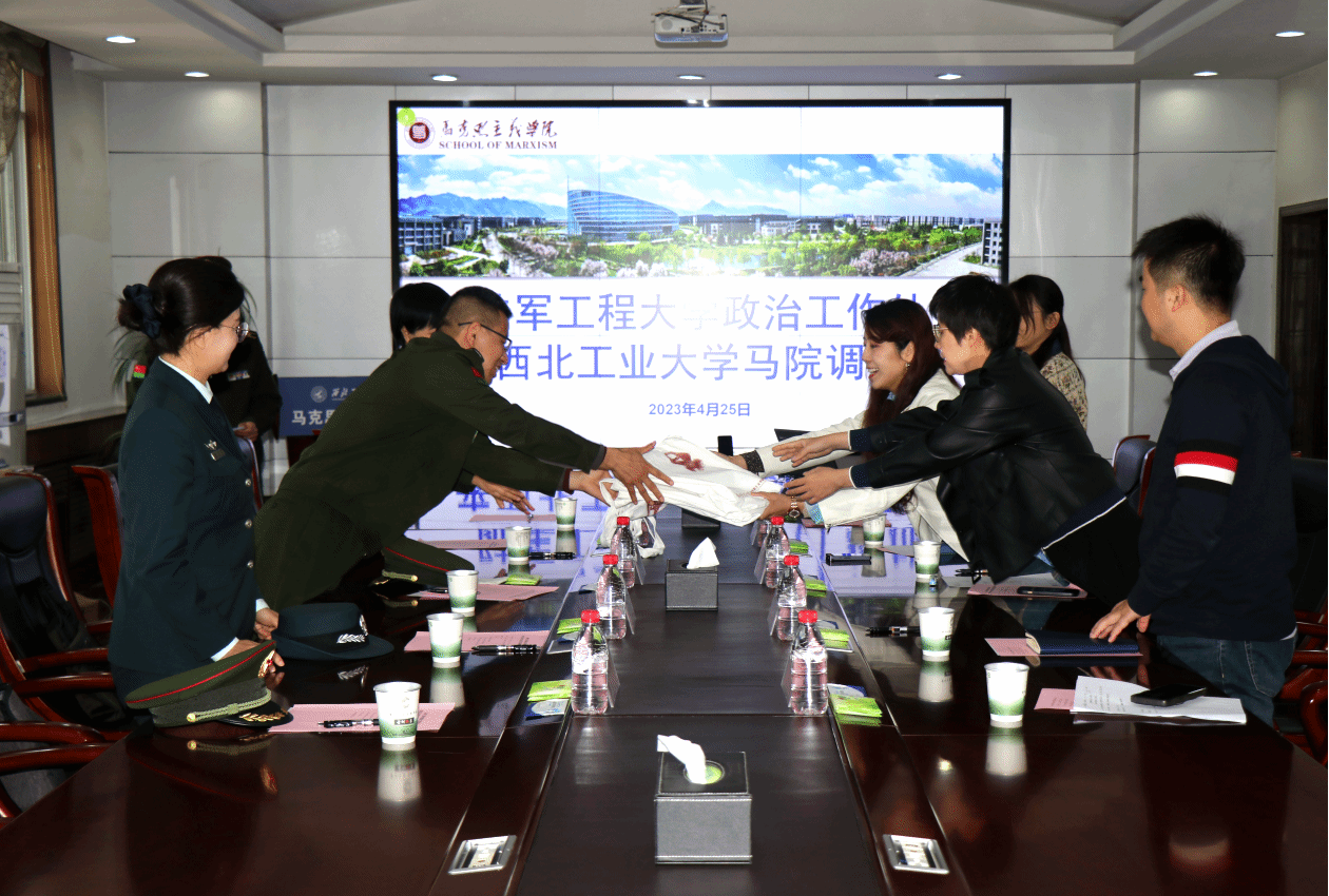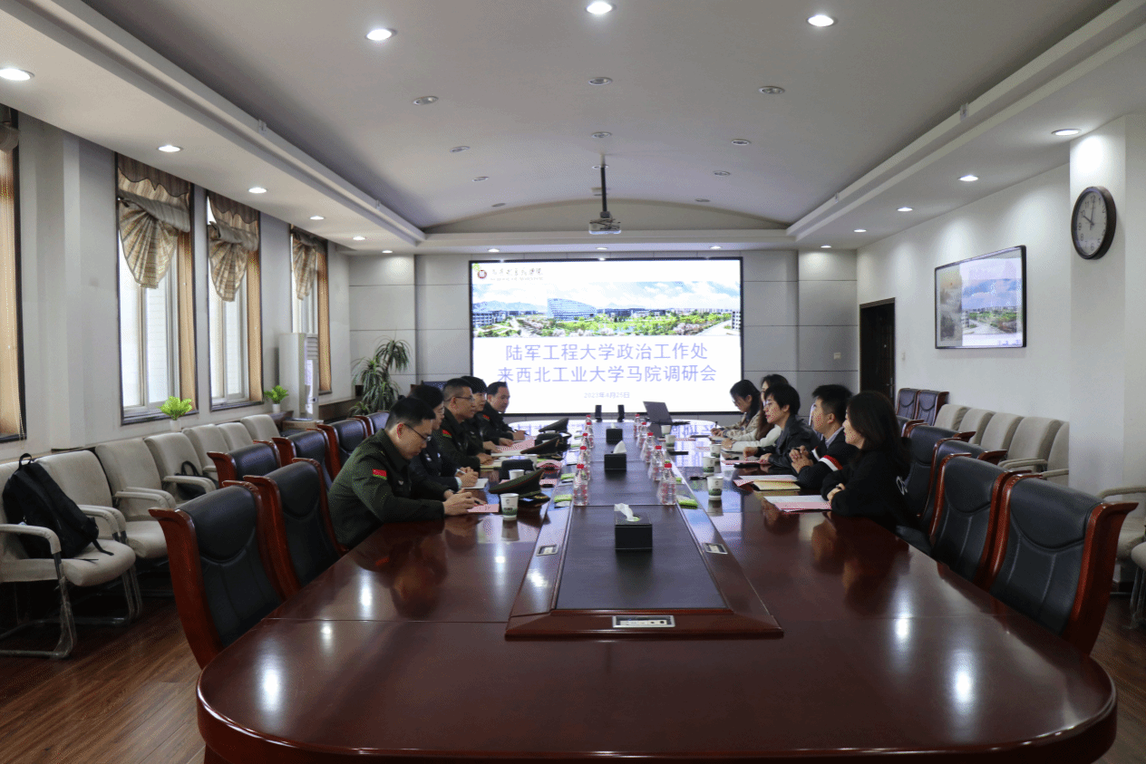 4月25日上午,陆军工程大学政治工作处政工系副主任、教授吴清江、教研室主任、副教授闫瑞平、教研室讲师张莹莹、机关参谋潘泓桥、机关干事王浩州来公司调研,公司副经理贺苗、马克思主义基本原理系教学主任杨永强、办公室主任郭雅楠、思想政治教育系助理教授许斯诺、公共课教学秘书张笑男参加了调研会。会议由贺苗主持。