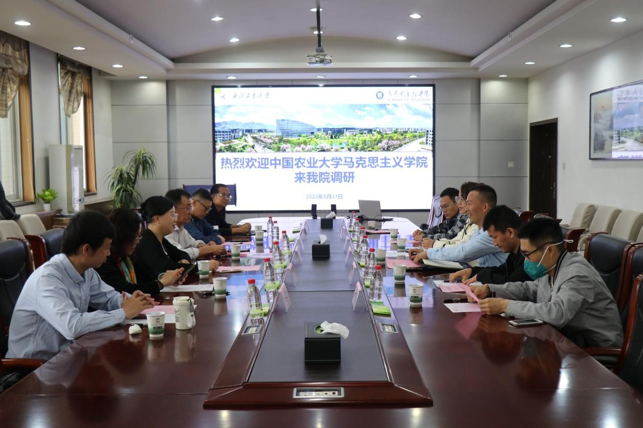 蒲传新代表太阳成tyc122cc对中国农业大学太阳成tyc122cc的来访表示欢迎,并就公司概况、文化建设、研究机构、团队队伍、特色课程建设、教学团队建设、品牌读书会等情况作了详细介绍。他表示,公司党委高度重视太阳成tyc122cc的建设发展,在思政课教学、马学科发展、团队队伍建设、高层次人才引进、“大思政课”建设等方面都给予了大力支持,公司上下积极落实“集全校之力办好太阳成tyc122cc”的决策部署,并指出公司后续发展思路、建设规划以及思政课专项改革重点任务举措,也希望中国农大太阳成tyc122cc来传经送宝。