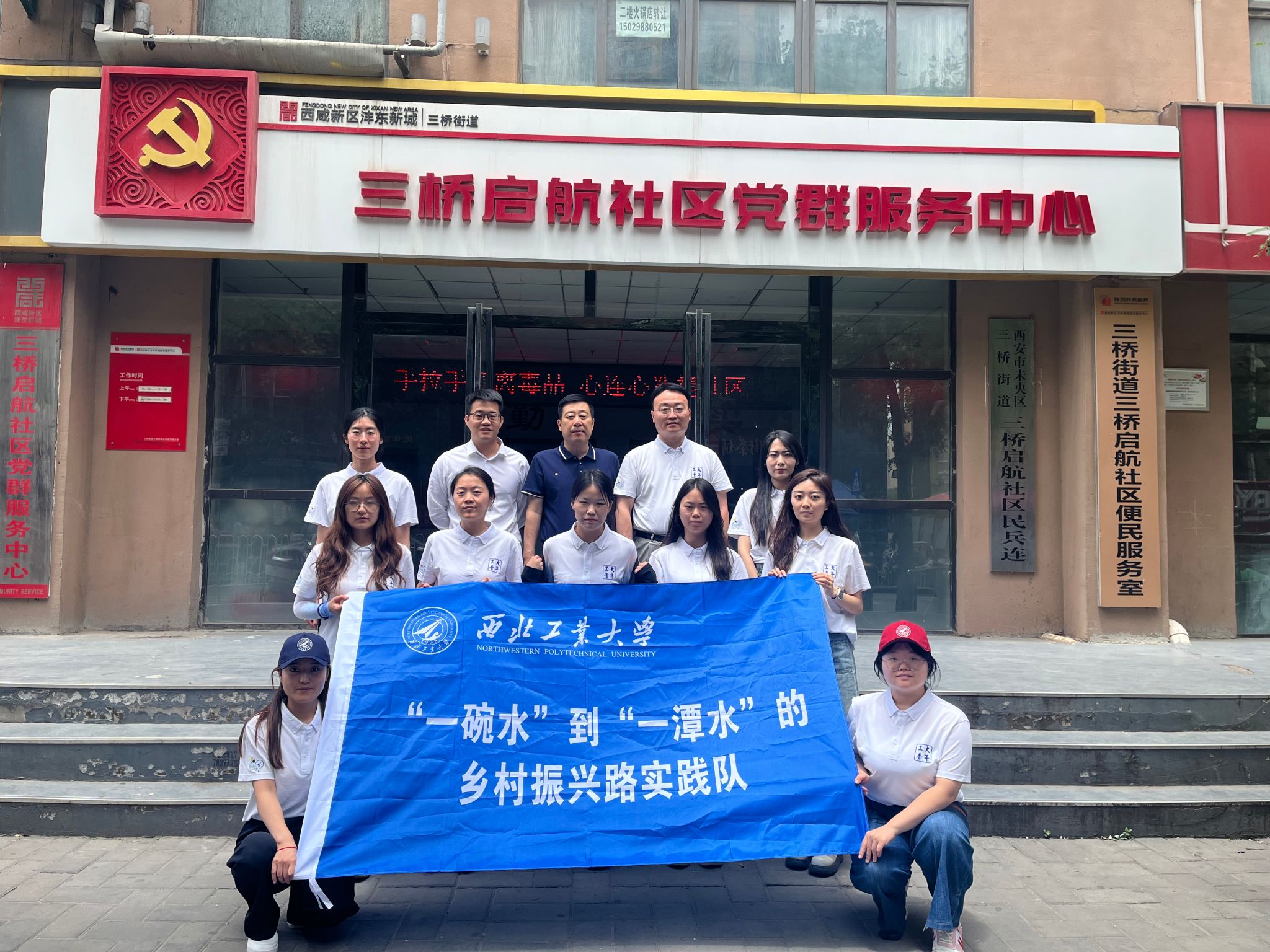 为积极响应乡村振兴战略,深入学习新型农村集体经济发展经验, 2023年7月6日,太阳成tyc122cc“‘一碗水’到‘一潭水’的乡村振兴路”实践队在房小捷老师的带领下前往西安市未央区三桥街道,调研走访了三桥启航社区和建章路社区。
