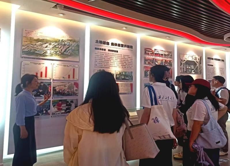 7月4日上午,实践队成员在和平村书记助理李伟强、村妇联副主任陈艳艳的带领下,首先前往参观了和平村村史馆,对和平村的基本情况、致富历史、文化建设等方面进行了系统了解。紧接着,实践队员来到了和平村村民议事堂,集体观看了和平村宣传视频,共同了解了和平村创新性“反包”村民土地以建设工业园区并招商引资、对村集体经济进行股份制改造、村庄自主城市化的发展历史,深刻体悟到以老书记白世峰同志为代表的老一辈村干部群体带领全村人民致富向前的真挚情怀与艰苦奋斗。