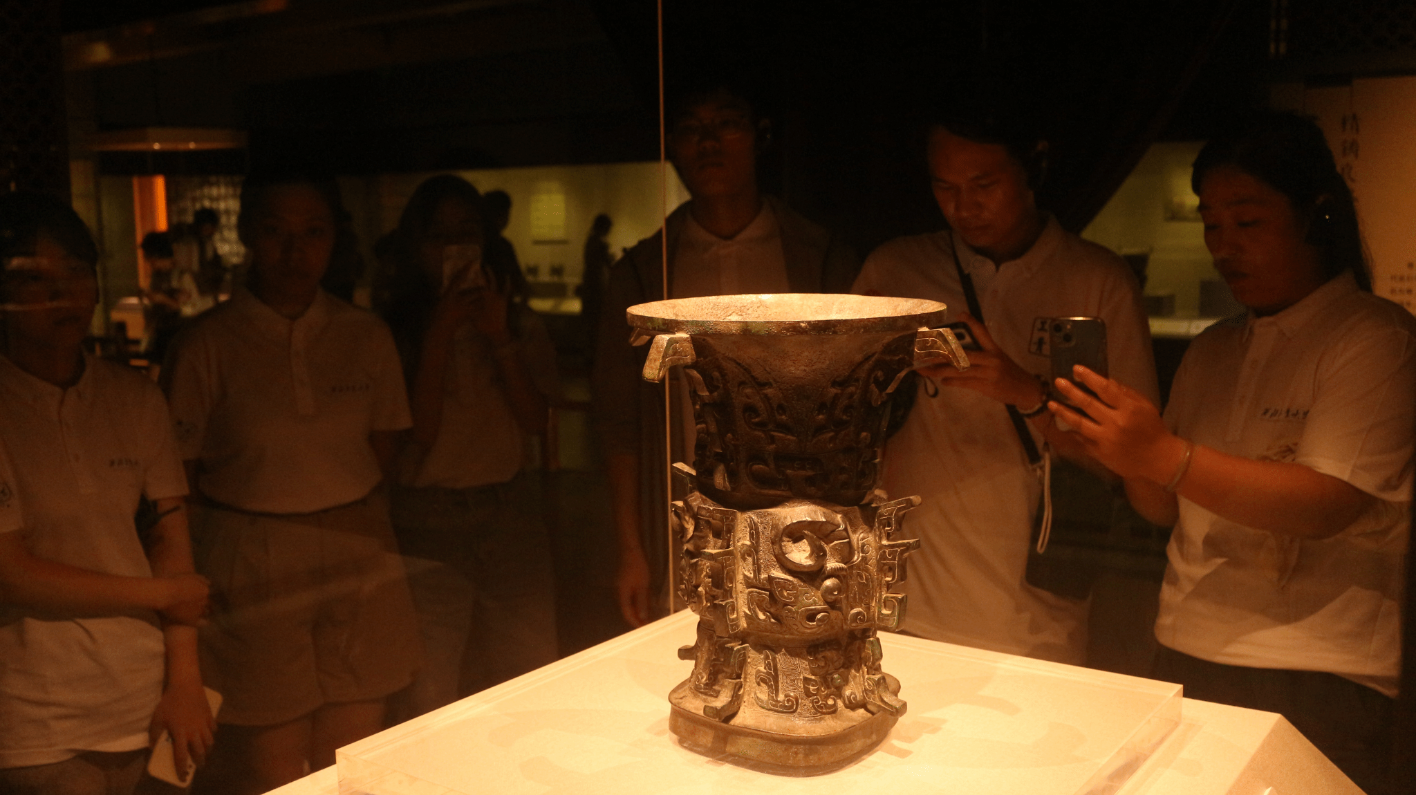 跨越千年的时光,青铜器作为历史无声的见证者向实践队员展示了周秦的文化。在这一展馆,青铜器的制作工艺以更直观的方式展现出来,实践队员了解到了青铜器铸造使用的模范法和失蜡法,在参观过程中屡屡赞叹古人的智慧,对中华文明的自信油然而生。