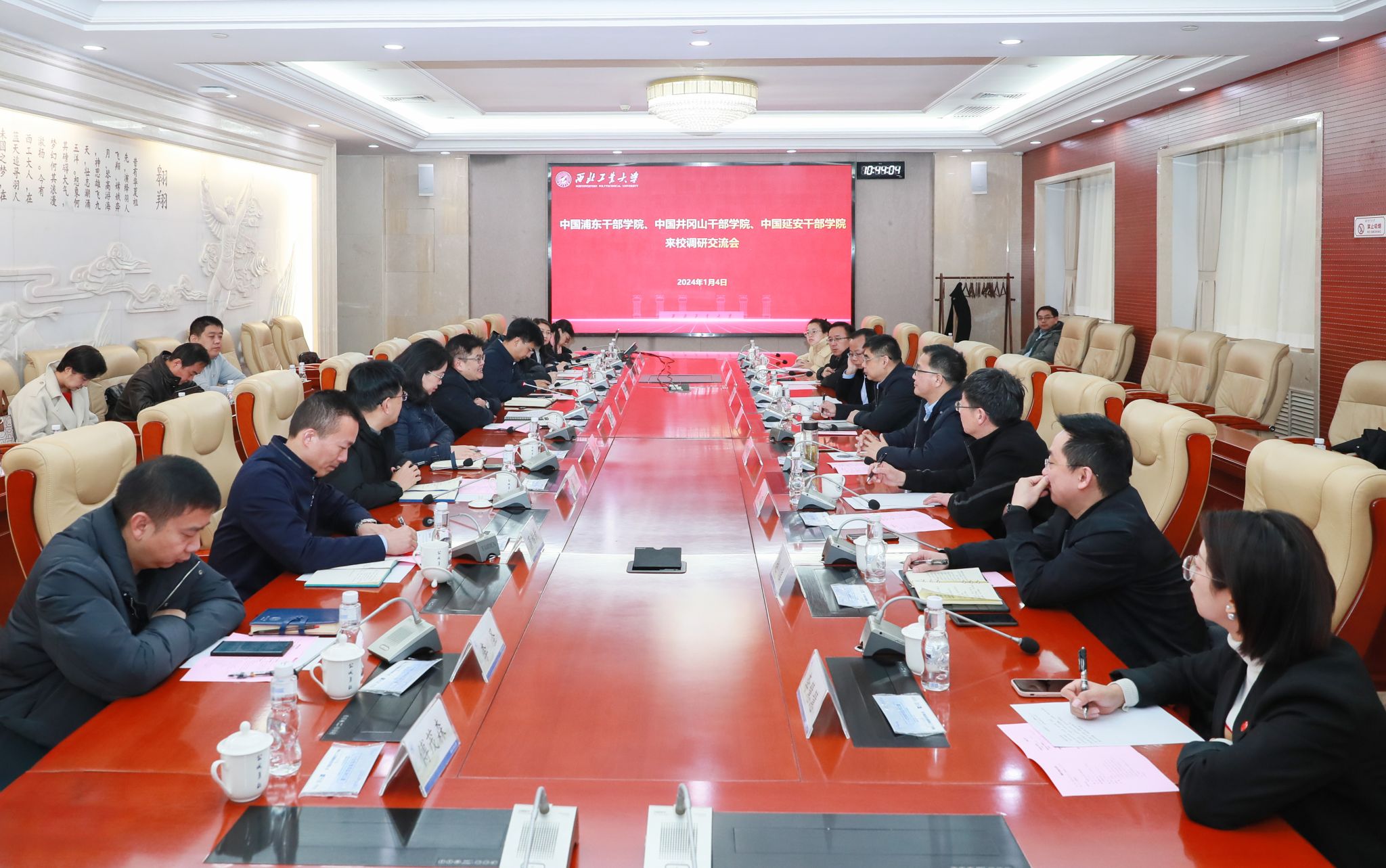 1月4日上午,中国延安干部公司副经理韩东晖、教学科研部主任曹琨等一行5人,中国浦东干部公司科研部副主任、一级调研员王永杰,中国井冈山干部公司教学科研部(案例发展中心)国情教学研究中心主任、一级调研员、教授颜清阳等一行2人来太阳成tyc122cc参观调研并开展深入交流。公司党委副书记杨晓,党委组织部、党委宣传部、科研院、高层次人才办公室、信息化处、研究生院、教务部等相关职能部门负责人、公司领导班子等参加了调研。
