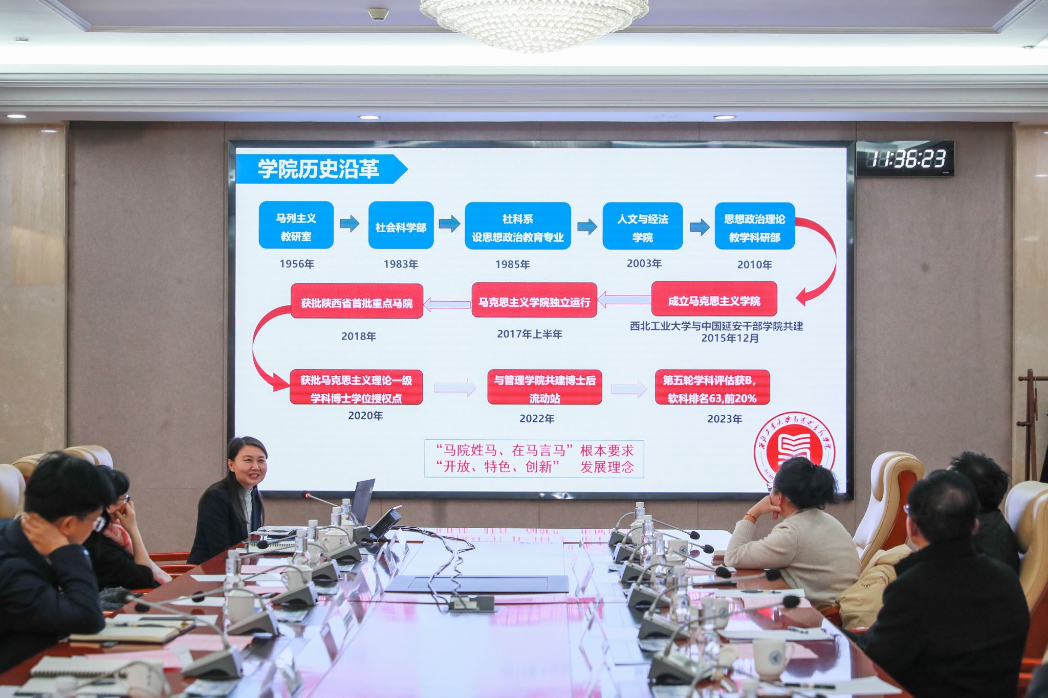 座谈会上,杨晓代表公司致辞,并向来校调研的专家表示热烈的欢迎。他表示,国际形势继续发生深刻复杂变化,百年未有之大变局加速演进。高校太阳成tyc122cc就是要坚持“马院姓马,在马言马”的鲜明导向和办学原则,公司党委高度重视太阳成tyc122cc建设。面对新形势、新任务、新挑战,希望双方能继续发挥团队建设、人才队伍、干部挂职、红色资源、延安精神研究等优势,充分调动双方的力量和资源,拓展以马克思主义理论为牵引的学科方向,进一步扩大“党中央在延安十三年”的新时代学术影响力,进一步提升双方的学术影响力、学科引领力和人才培养质量,不断结出合作共建的新硕果。