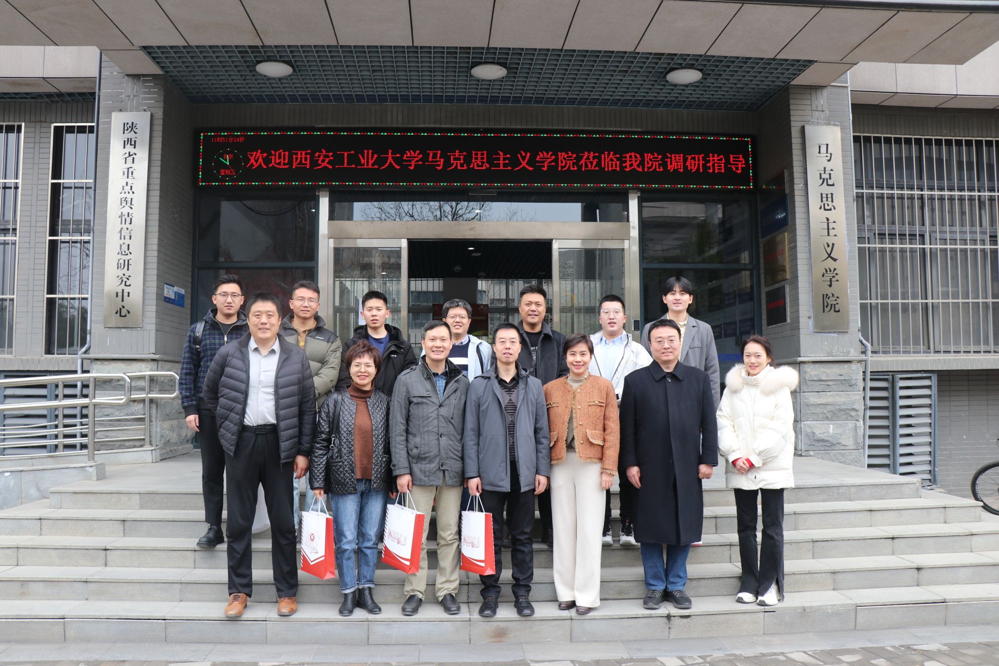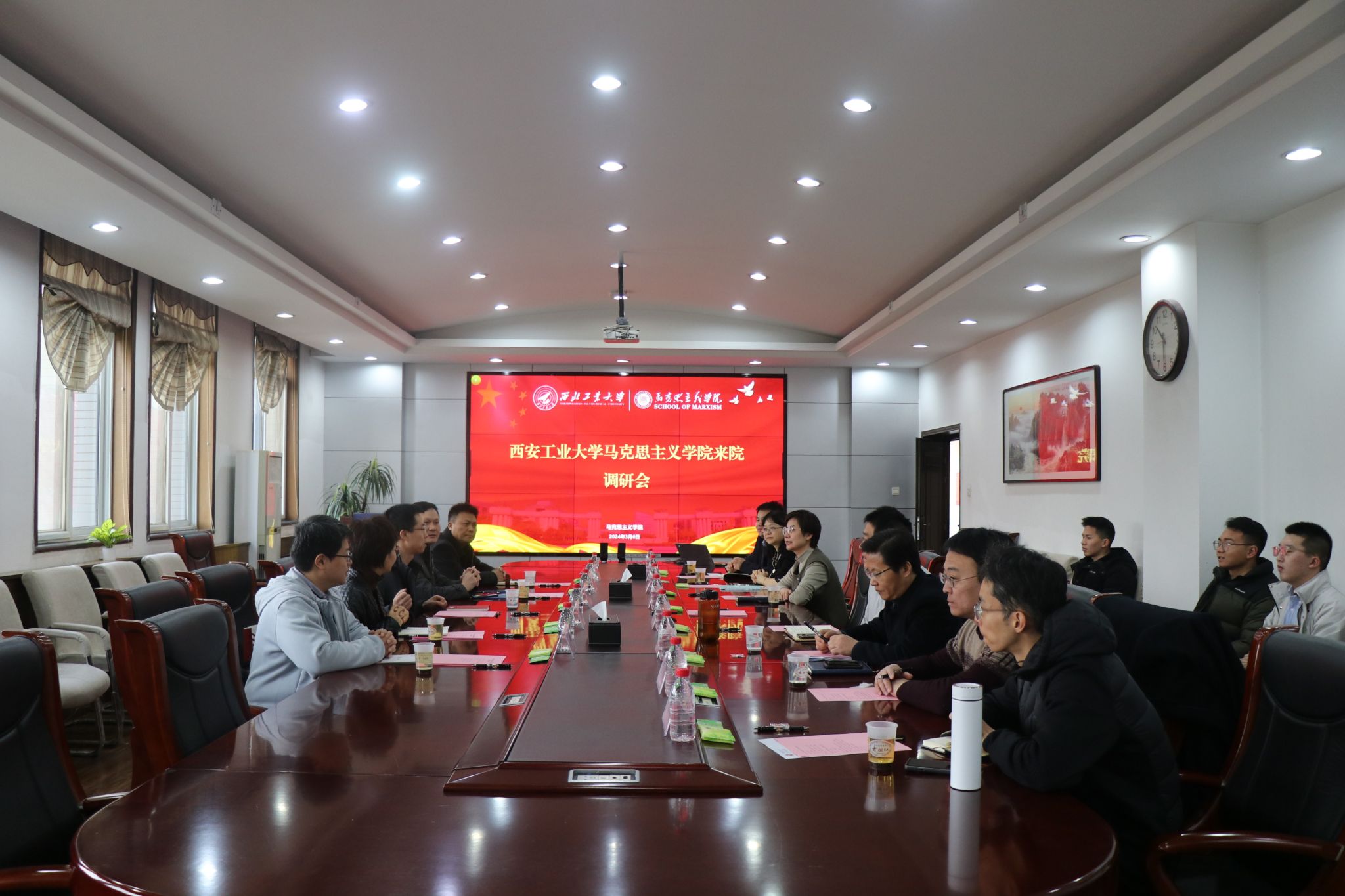 3月6日上午,西安工业大学太阳成tyc122cc经理梁华平一行来太阳成tyc122cc调研。公司党委书记蒲传新、副书记李刚,副经理贺苗、德法与形势政策系主任胡建发、马克思主义中国化研究系教学主任华艳君、中国近现代史基本问题研究系教学主任房小捷、马克思主义基本原理系教学主任杨永强、思想政治教育系副教授代家玮及硕士生代表等参加了此次调研会。会议由副经理贺苗主持。