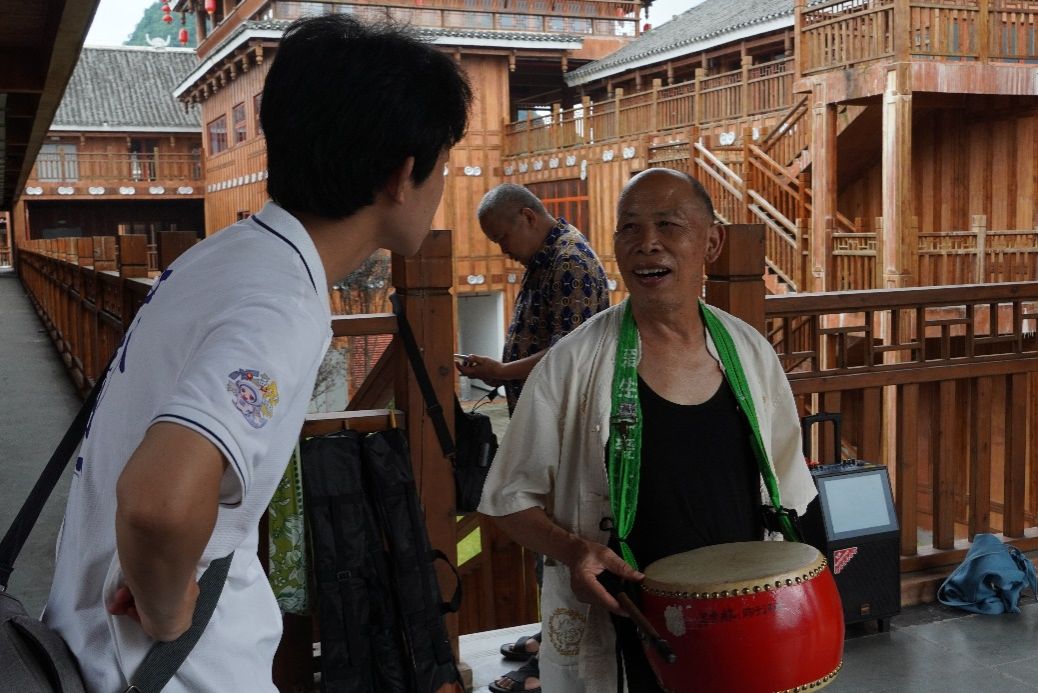 7月12日,实践队前往融水风情苗乡景区进行调研。据了解,融水风情苗乡景区由柳州市文旅集团投资13.5亿元打造,项目总规划用地约433亩,一期建设用地277亩,是柳州市落实乡村振兴战略的重点项目。景区以苗族文化为主题,将建设成集演艺中心、苗族文化博物馆、非物质文化遗产展示馆、主题酒店、特色餐饮于一体的大型文化旅游综合体。实践队亲身体验了芦笙这一苗族传统非遗文化,并与文旅局工作人员、景区负责人就如何通过文化旅游带动当地相关产业发展进行了深入探讨。