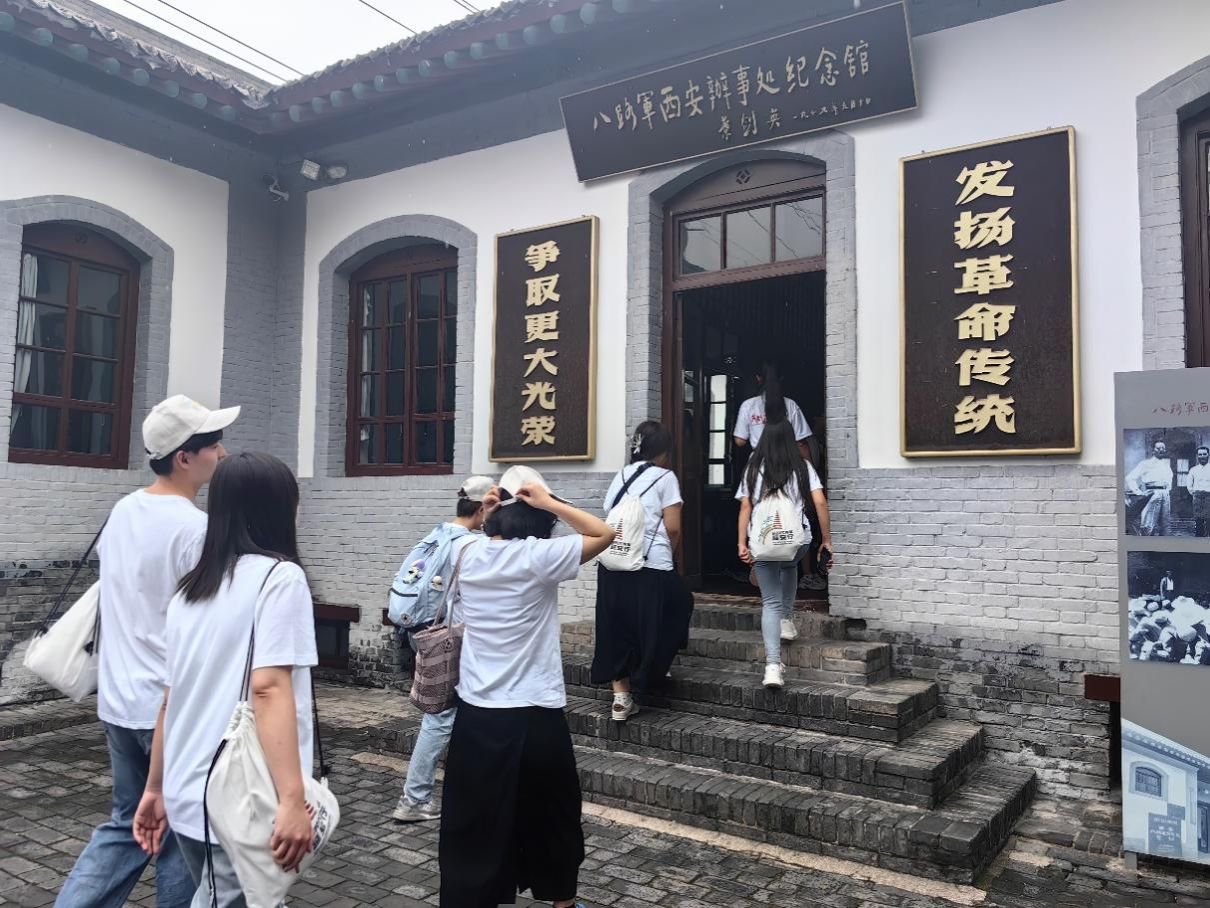 第二站,实践队员们驱车前往陕西省咸阳市泾阳县安吴镇安吴堡村,探访安吴战时青年训练班革命旧址。这里是抗日战争时期由西北青年救国联合会在安吴堡创办的战时青年训练班所在地,被誉为“青年的故乡”“抗日干部的摇篮”。通过了解学习安吴战时青年训练班的创建背景、发展过程和革命成果,大家深刻感受到了先辈们艰苦奋斗、不怕牺牲、无私奉献的崇高革命精神。铺陈革命历史的卷轴,仰望安吴青训班这颗照耀青史的红星,真实触摸到流淌于血脉的红色基因与青春力量,一同体悟着习近平总书记所说的:“革命博物馆、纪念馆、党史馆、烈士陵园等是党和国家红色基因库。要把红色资源作为坚定理想信念、加强党性修养的生动教材,讲好党的故事、革命的故事、根据地的故事、英雄和烈士的故事,加强革命传统教育、爱国主义教育、青少年思想道德教育,把红色基因传承好,确保红色江山永不变色。”