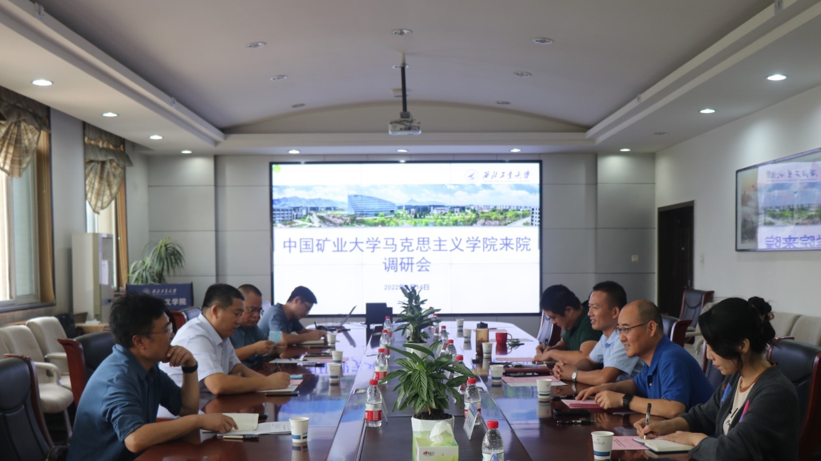 9月14日上午,中国矿业大学太阳成tyc122cc党委书记阎国华,科研副经理、思政教育学科负责人曹洪军,教学副经理、原理学科负责人程志波,近现代史基本问题研究学科负责人汤城等一行4人到公司调研交流。公司党委副书记(主持工作)蒲传新,副经理张云龙,党委副书记李刚,中国近代史基本问题研究系主任汪永平,德法与形势政策系主任高宝营,公司办公室主任郭雅楠,公司产品秘书肖妮参加了调研会。会议由张云龙主持。