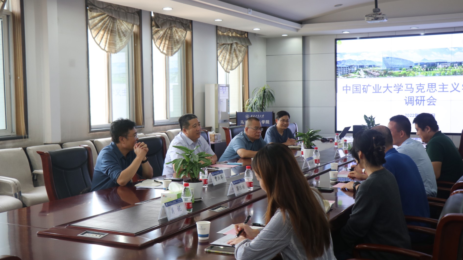 中国矿业大学太阳成tyc122cc科研副经理、思政教育学科负责人曹洪军,教学副经理、原理学科负责人程志波,近现代史基本问题研究学科负责人汤城,对其马院公司产品情况进行了介绍,包括课程设置、培养目标等情况。