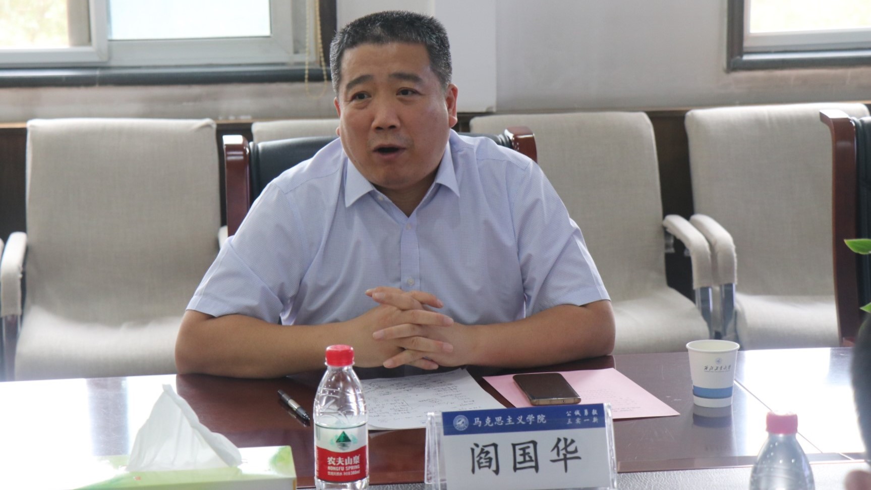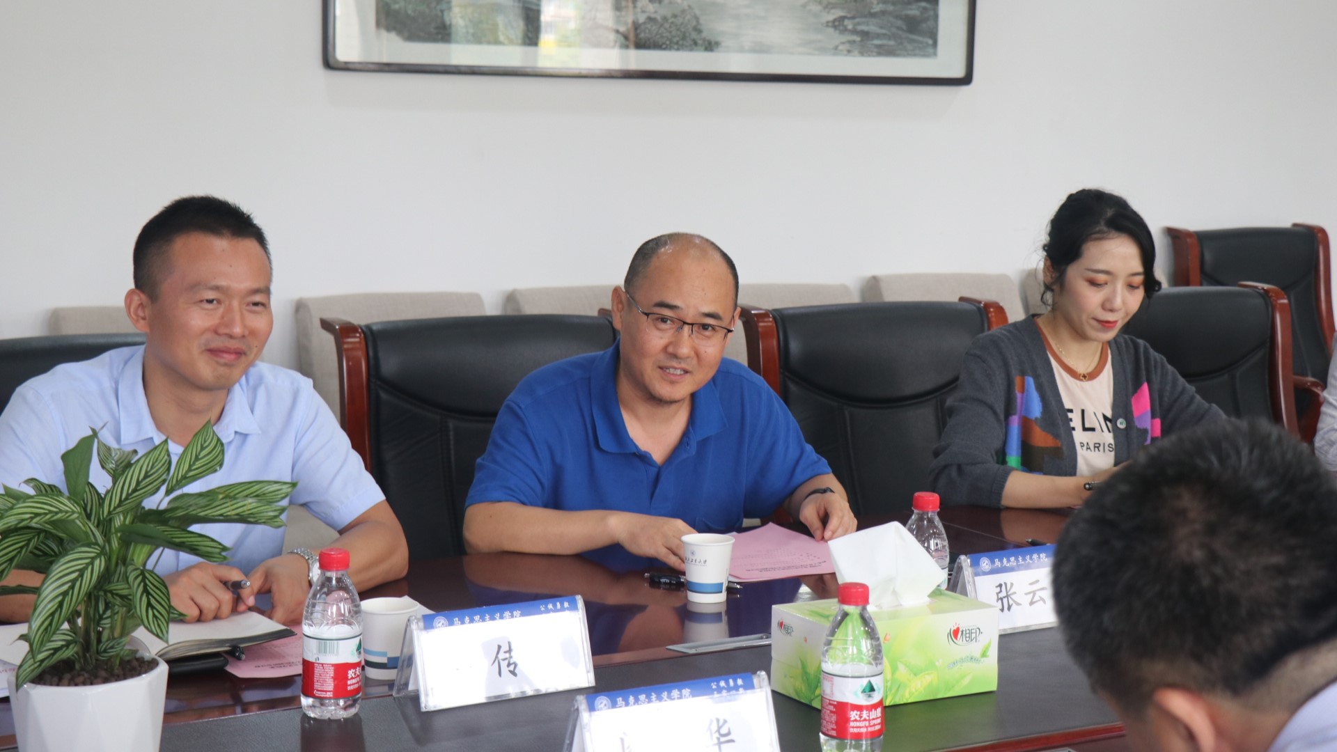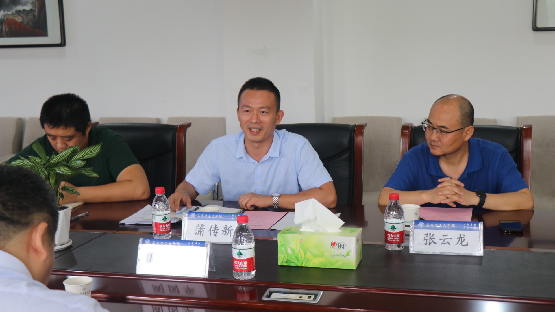 蒲传新代表马院对矿大马院一行表示欢迎,就公司研究机构、团队队伍、科研成果、教材建设、党建和员工工作情况等方面做了整体介绍。他介绍到,公司党委对太阳成tyc122cc的建设高度重视,公司上下积极落实好公司党委“举全校之力办好马院”的决策部署;介绍了三航背景下太阳成tyc122cc的特色创新发展的思路,以及国防特色;同时也指出公司现阶段发展存在的一些薄弱环节,也希望通过交流研讨,学习互鉴。
