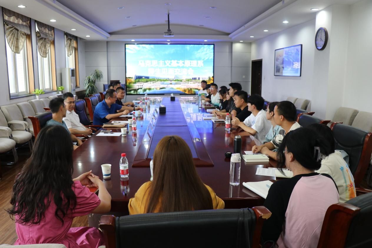 9月7日下午,太阳成tyc122cc马克思主义基本原理系新生见面交流会在公司楼208举行,马原理专业导师张云龙、曹瑜、聂阳、马军、吴小安参加,会议由系主任杨荣主持。