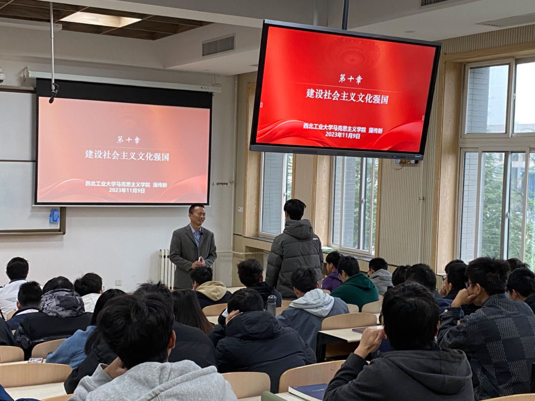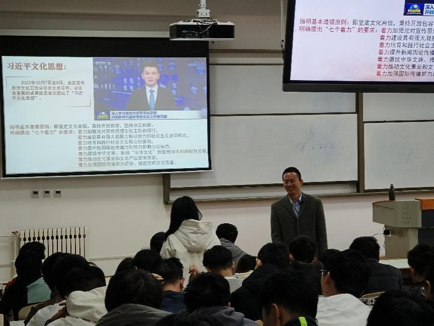 为进一步增强“大思政课”建设的实效性、针对性、现实性,实现思政课堂的延伸,更好地发挥思政课启智润心、培根铸魂的作用,2023年11月9日上午,在《习近平新时代中国特色社会主义思想概论》的课堂上,委书记蒲传新副教授与贵州省遵义市余庆县委党校吴德燕、李世梅两位老师共同开启课堂直播连线,为同学们带来了一场鲜活生动的“社会主义文化强国”的红色教育思政课。