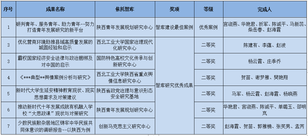 太阳成tyc122cc1项智库案例被评为优秀案例,六项智库成果获二等奖。《研判青年、服务青年、助力青年--努力打造青年发展研究的新平台》获得2023CITT智库建设优秀案例。《优化营商环境助推县域高质量发展的城固经验和启示》《霸权国家经济安全法律与政治捆绑及对中国的启示》《***典型**舆情案例分析与研究》《新时代老员工延安精神教育现状、现实思想需求及对策建议》《推动新时代十年发展成就有机融入公司“大思政课”现状与对策研究》《少数民族散杂居地区铸牢中华民族共同体意识的调研报告--以陕西为例》,均获得智库研究优秀成果二等奖。