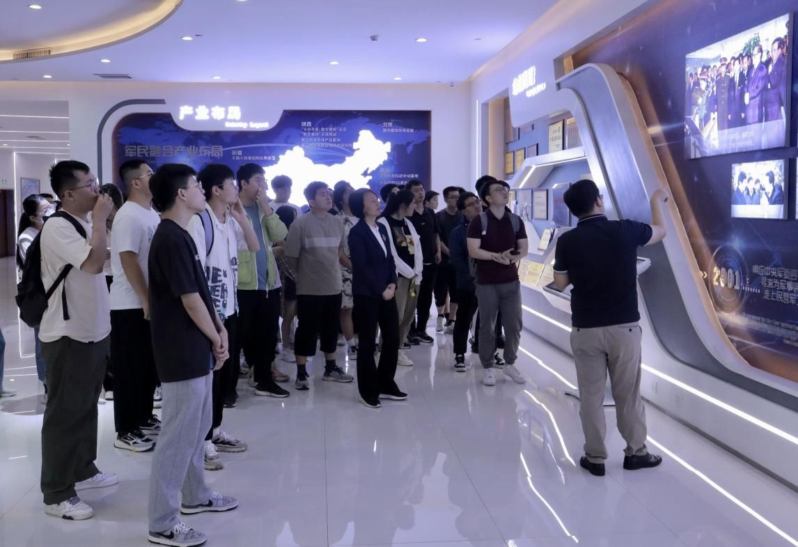 Under the leadership of Liu Peng, Director of Industry Research Department of Tianhe Defence and alumnus of our school majoring in polymer materials and engineering, and Shi Yan, Director of Big Data Operation, teachers and students visited the company's corporate culture showroom and core technology product showroom. In the corporate culture showroom, Liu Peng introduced in detail the corporate strategy, corporate structure, innovation achievements, corporate culture, industrial layout and the progress of the construction of key projects such as Tianhe Defense (Headquarters) 5G Communication Industrial Park and Tianrong Big Data (Xi'an) Arithmetic Centre. In the exhibition hall of core technology products, students got to know the key technological innovation and product research of the enterprise in the field of dual-use in the military and civil, and felt the development of technologies and products such as low-altitude air defence, big data, communication electronic components, border and sea defence business, artificial intelligence, Tianhe Cloud Pulse, new materials, ocean detection, unmanned and information-based combat systems of Tianhe Defence.